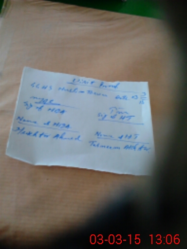 | Name: Qu**** Tu**** Ai**** Mu**** Designation: (School Headmaster's/Headmistress's) Sr . Headmistress Phone/Cell Number: 03**** |