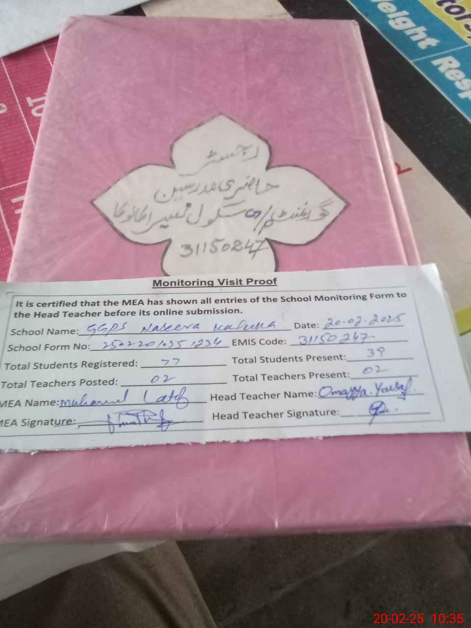 | EMIS Code: 31150247 | Name of School: GGPS NASEERA KALU KA | |||