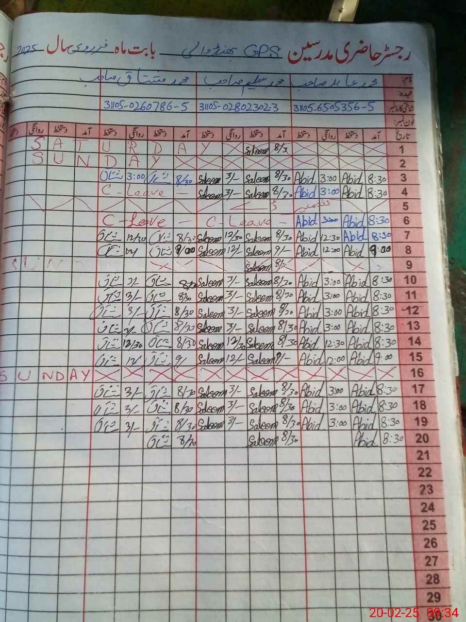 | Name: Mu**** Ab**** Designation: (School Headmaster's/Headmistress's) PST Phone/Cell Number: 03**** |