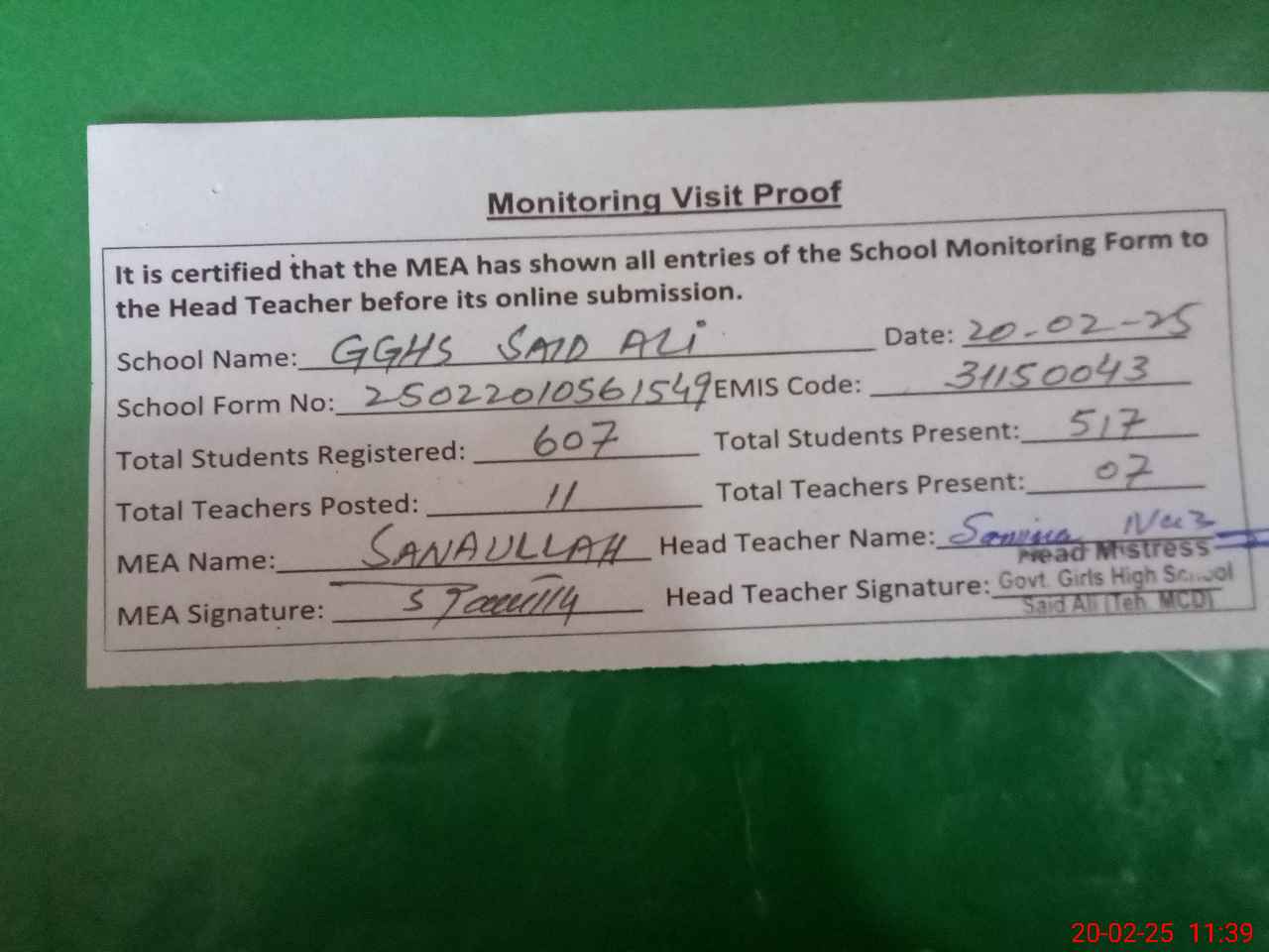| EMIS Code: 31150043 | Name of School: GGHS SAID ALI | |||