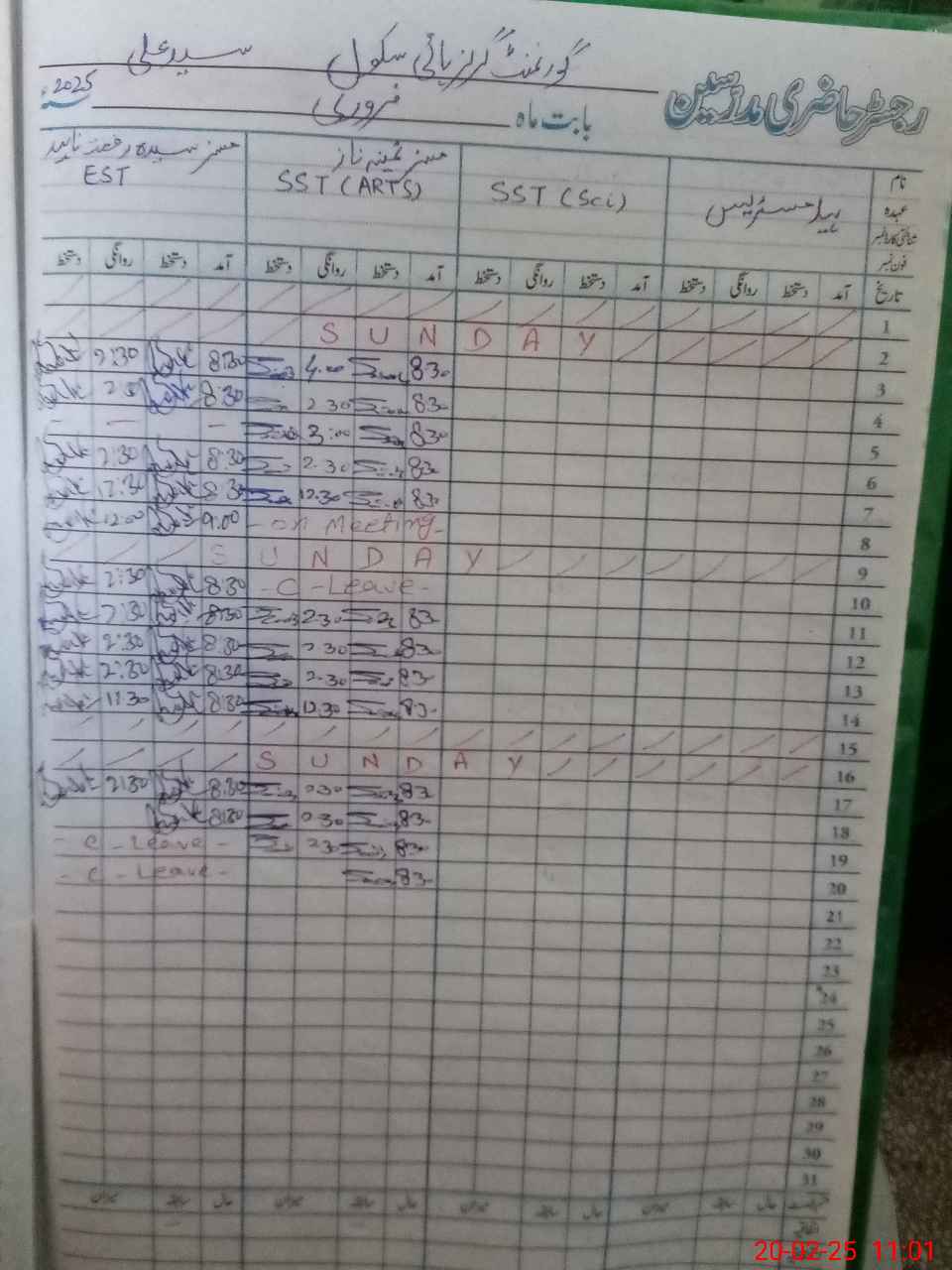 | 31**** | Sa**** Ri**** Na**** | 1 | 0 | 0 | 0 | 0 | 0 | 0 | 0 | 0 | 0 | Casual | |