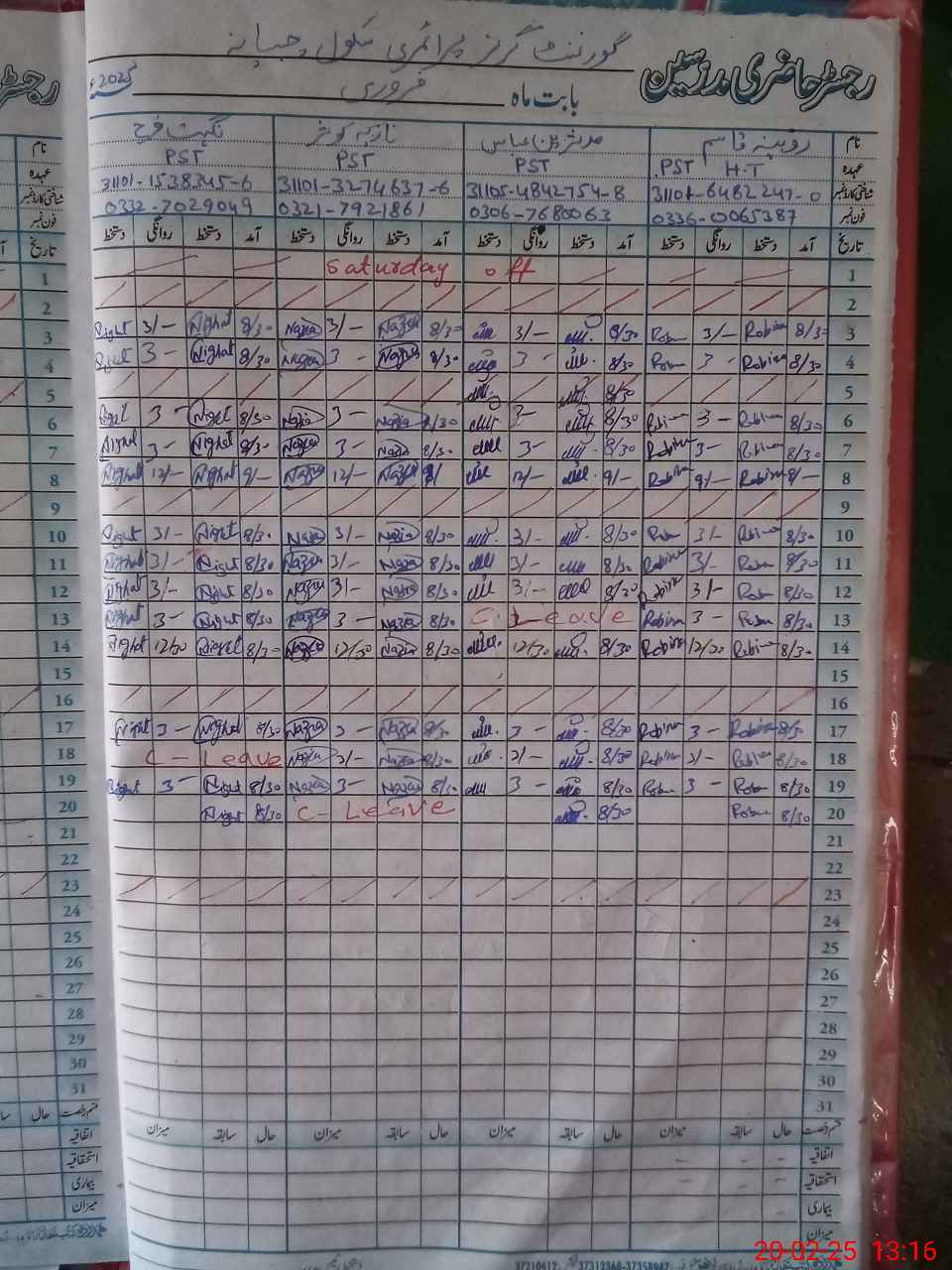 | Name: RO**** Qa**** Designation: (School Headmaster's/Headmistress's) PST Phone/Cell Number: 03**** |