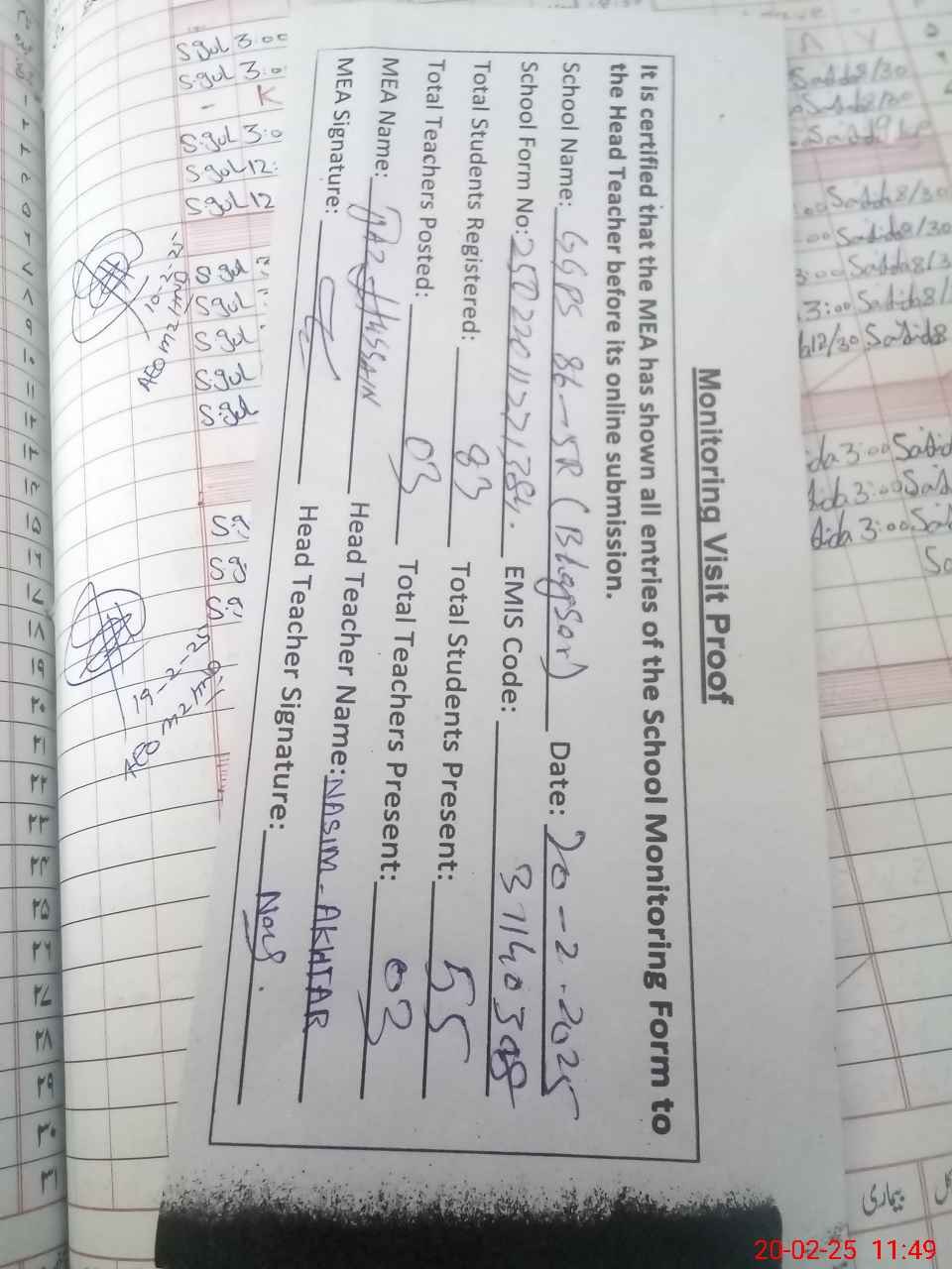 | EMIS Code: 31140308 | Name of School: GGPS CHAK NO 86/5-R BHAGSAR | |||