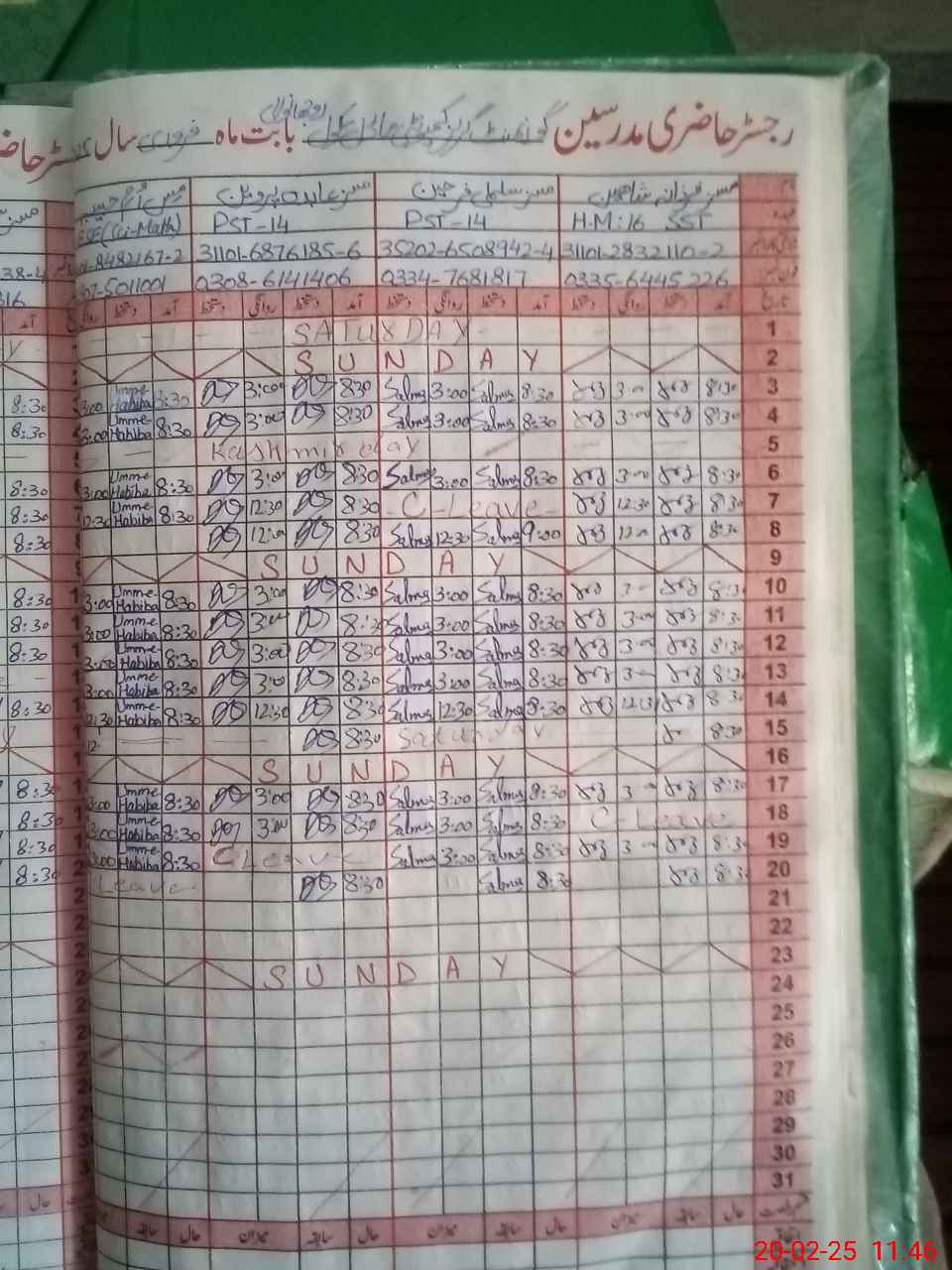 | Name: Fa**** Sh**** Designation: (School Headmaster's/Headmistress's) SST Phone/Cell Number: 03**** |