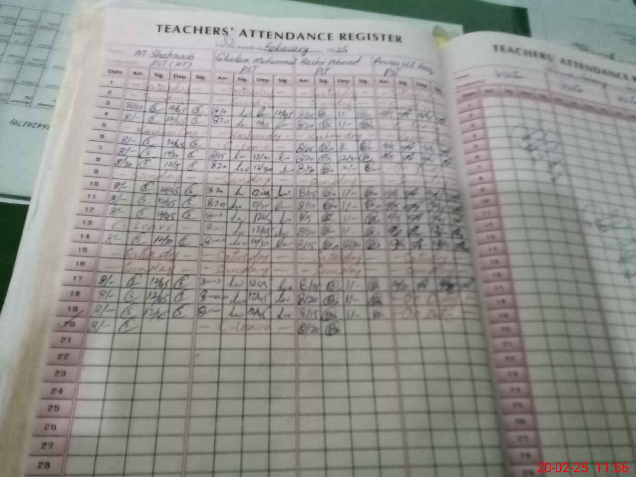 | 36**** | Gh**** Mu**** | PST | Regular | 2 | 0 | 0 | 0 | 0 | 0 | 0 | 0 | 2 | Casual |