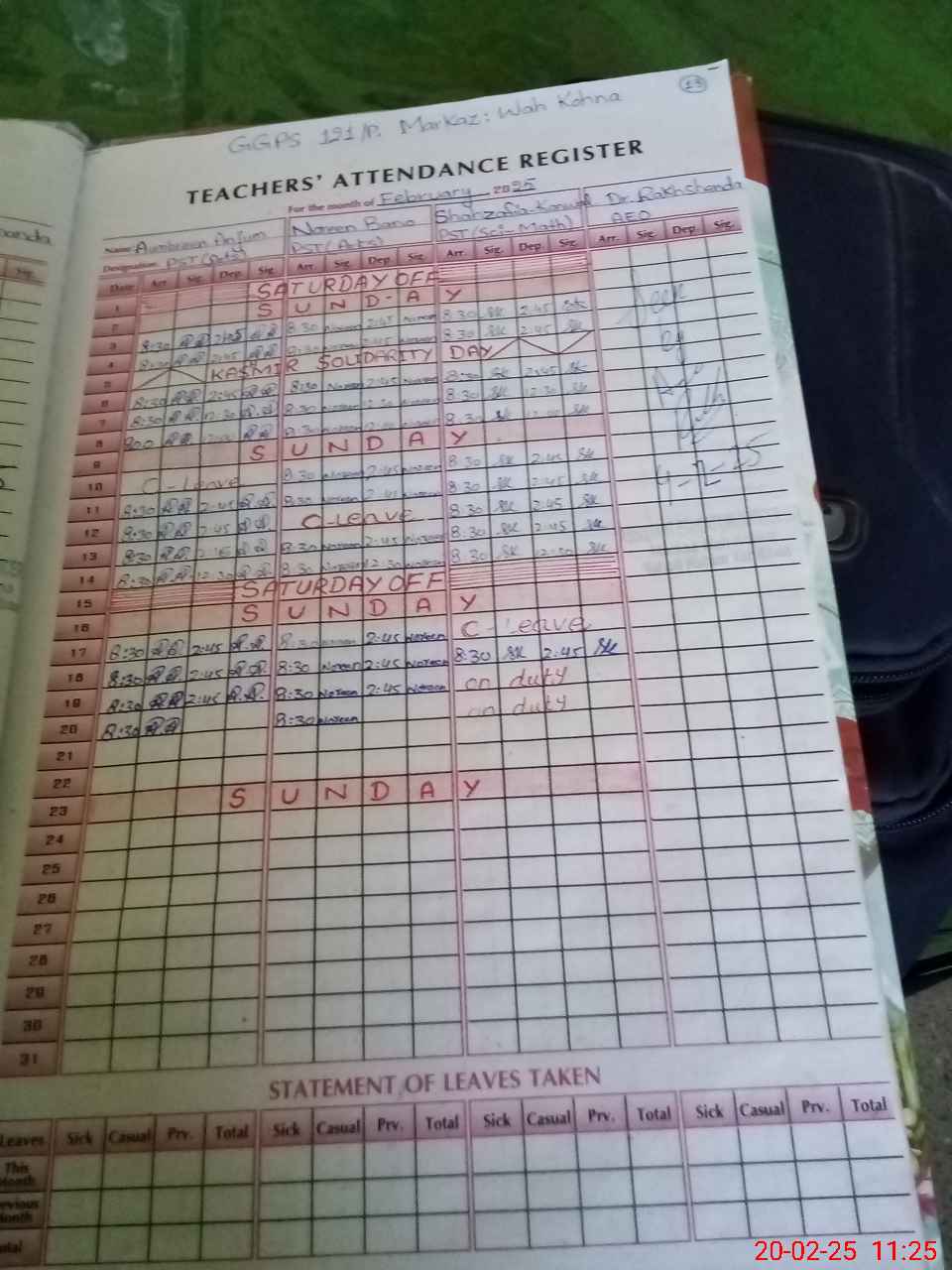 | 31**** | Sh**** Ka**** | 1 | 1 | 0 | 0 | 0 | 0 | 0 | 0 | 0 | 0 | 0 | Exam Duty |