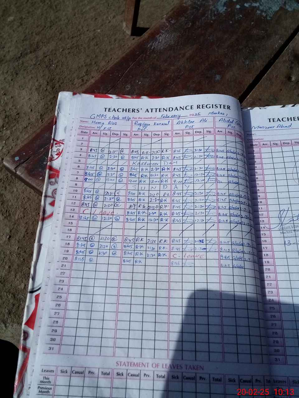 | Leave | Duty | Absent | Maternity | Medical | Ex- Pak |