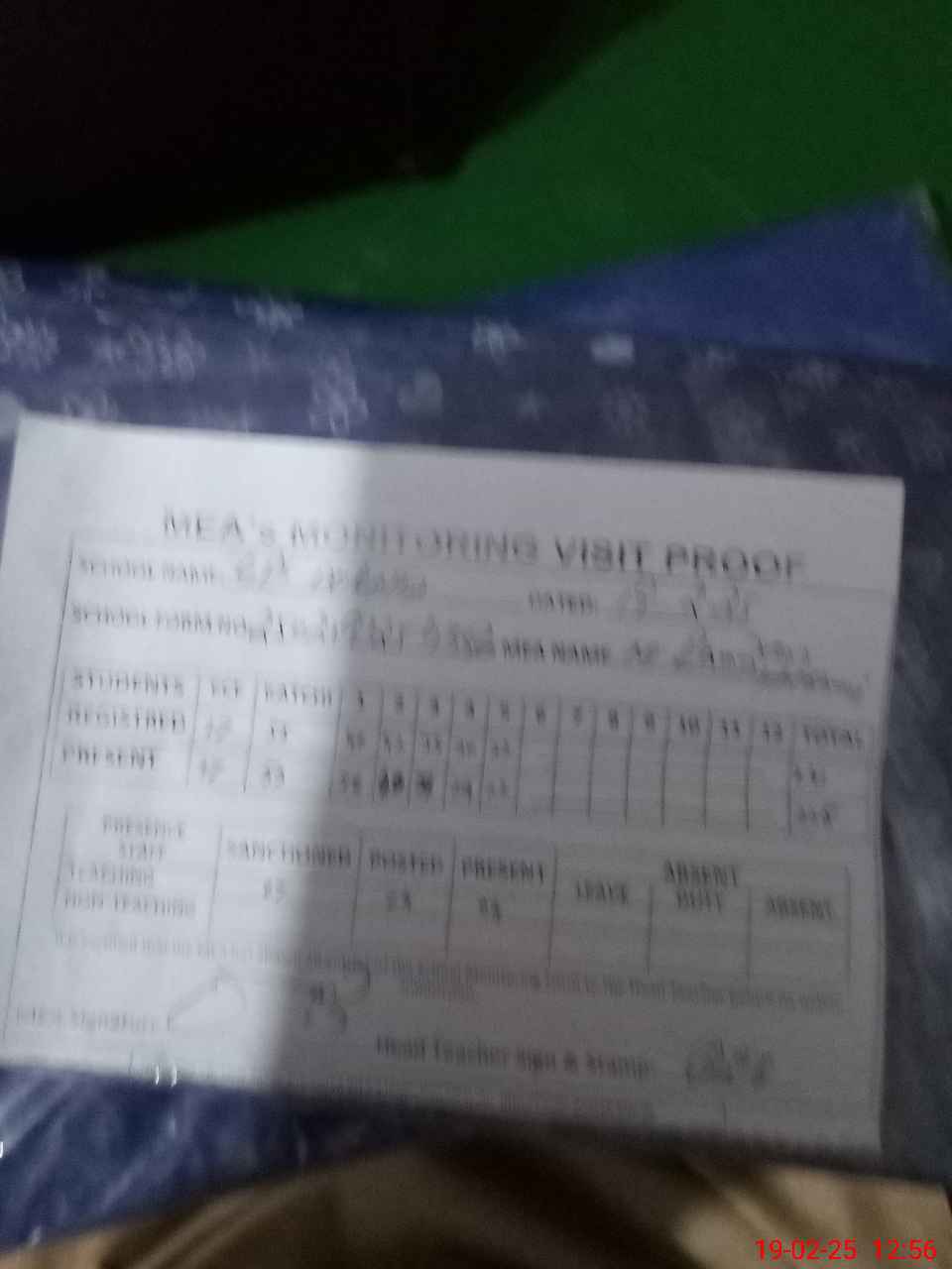 | Attendance Register | Head Teacher | MEA with School | Visit Proof |