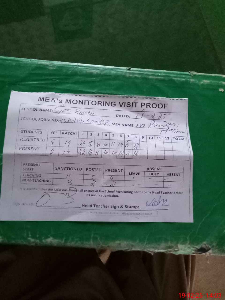 | EMIS Code: 36410319 | Name of School: GES BINDA SARGANA P/O MUMDAL | |||
