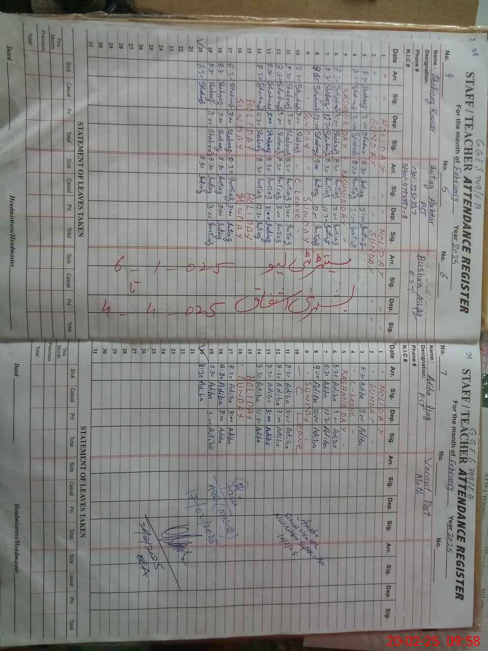 | Name: NA**** AK**** Designation: (School Headmaster's/Headmistress's) SST (GENERAL) Phone/Cell Number: 03**** |