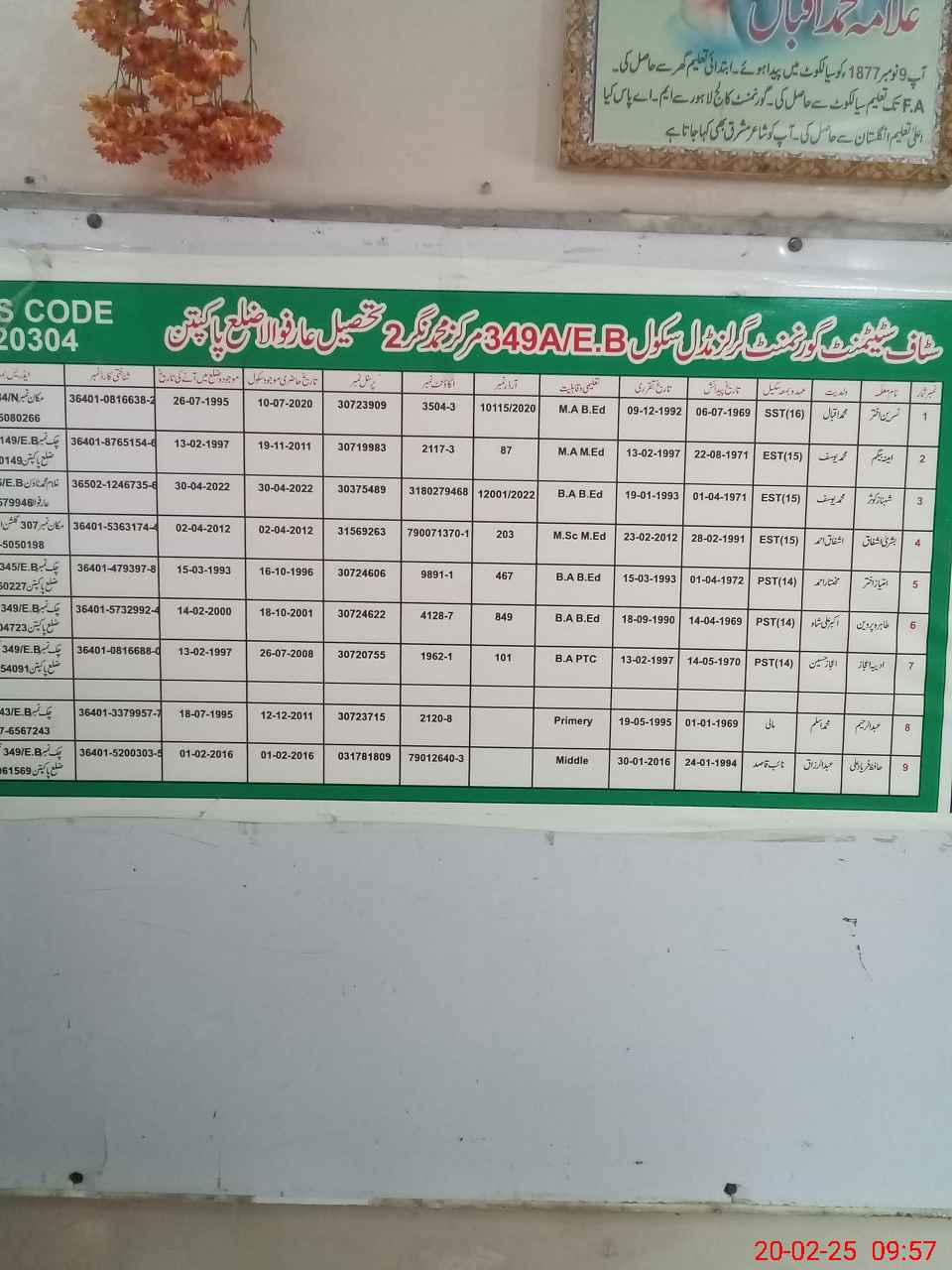 | EMIS Code: 39220304 | Name of School: GGES 349 EB POST OFFICE chak 157/EB | |||