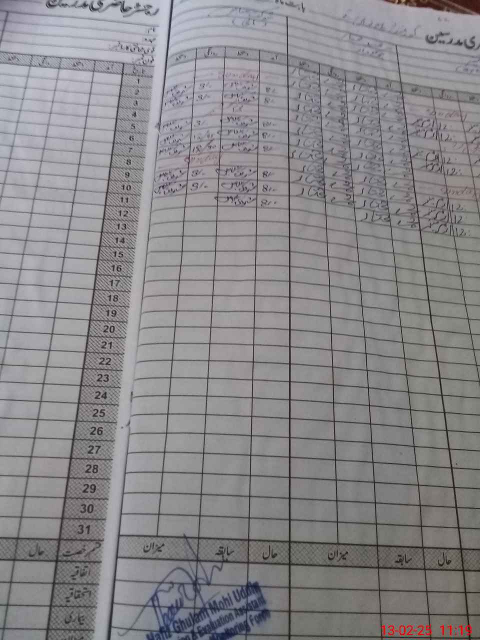 | CNIC | Full Name | Designation | R/C | Absence During Last Calender Month |
