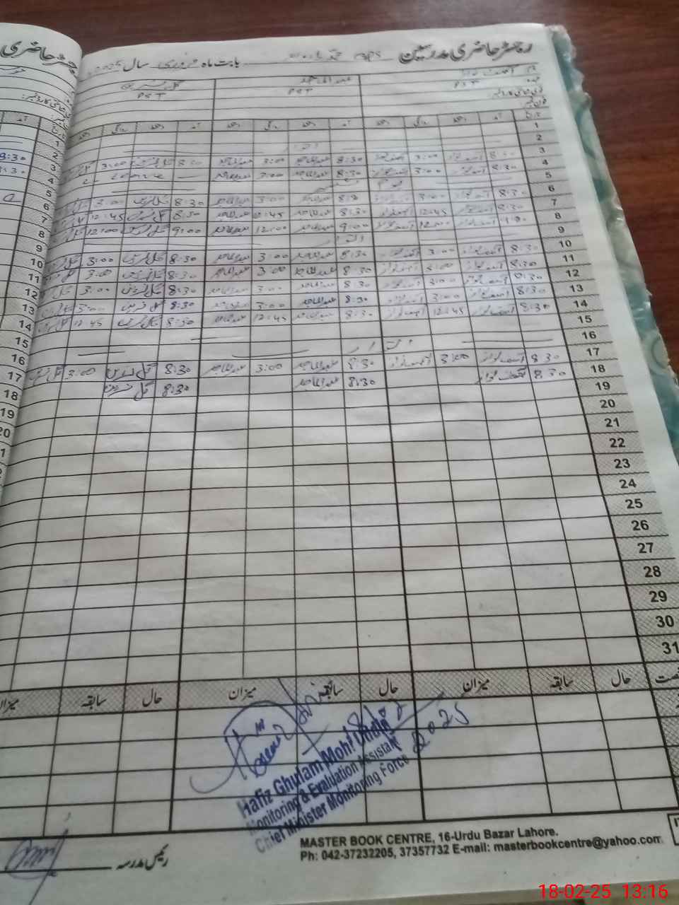 | CNIC | Full Name | Designation | R/C | Absence During Last Calender Month |