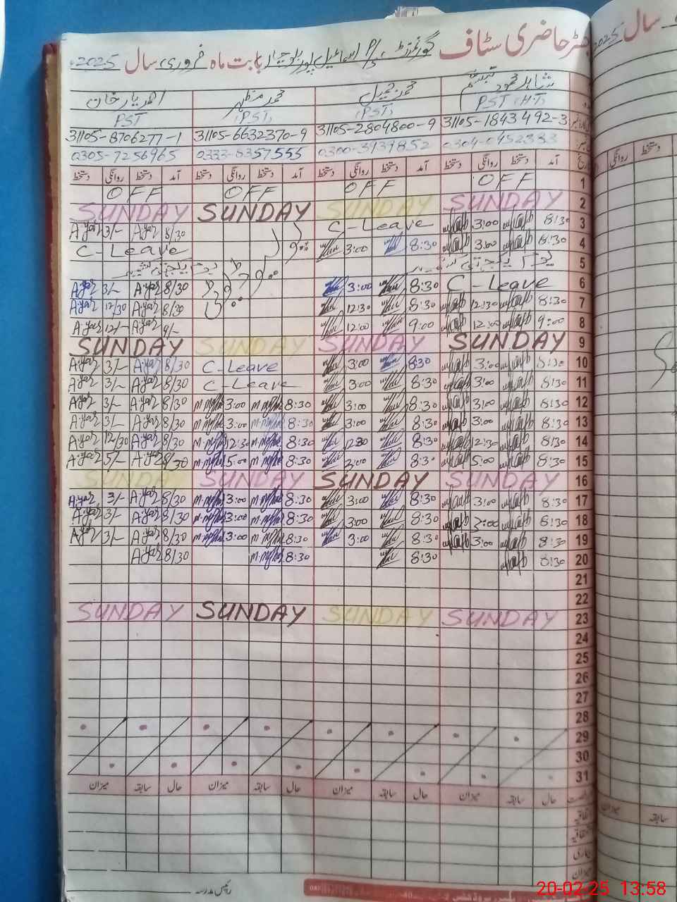 | CNIC | Full Name | Designation | R/C | Absence During Last Calender Month |