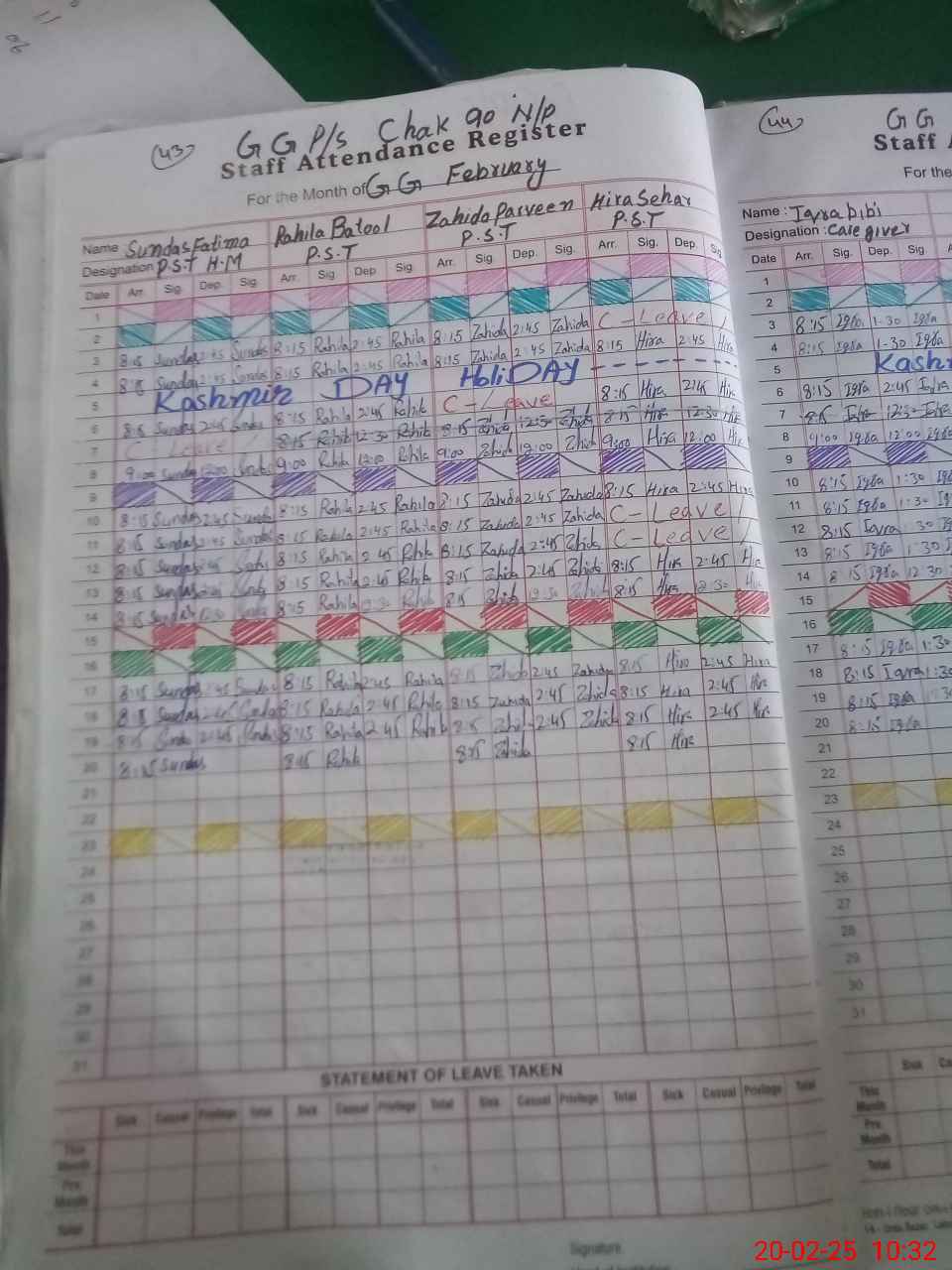 | Leave | Duty | Absent | Maternity | Medical | Ex- Pak |