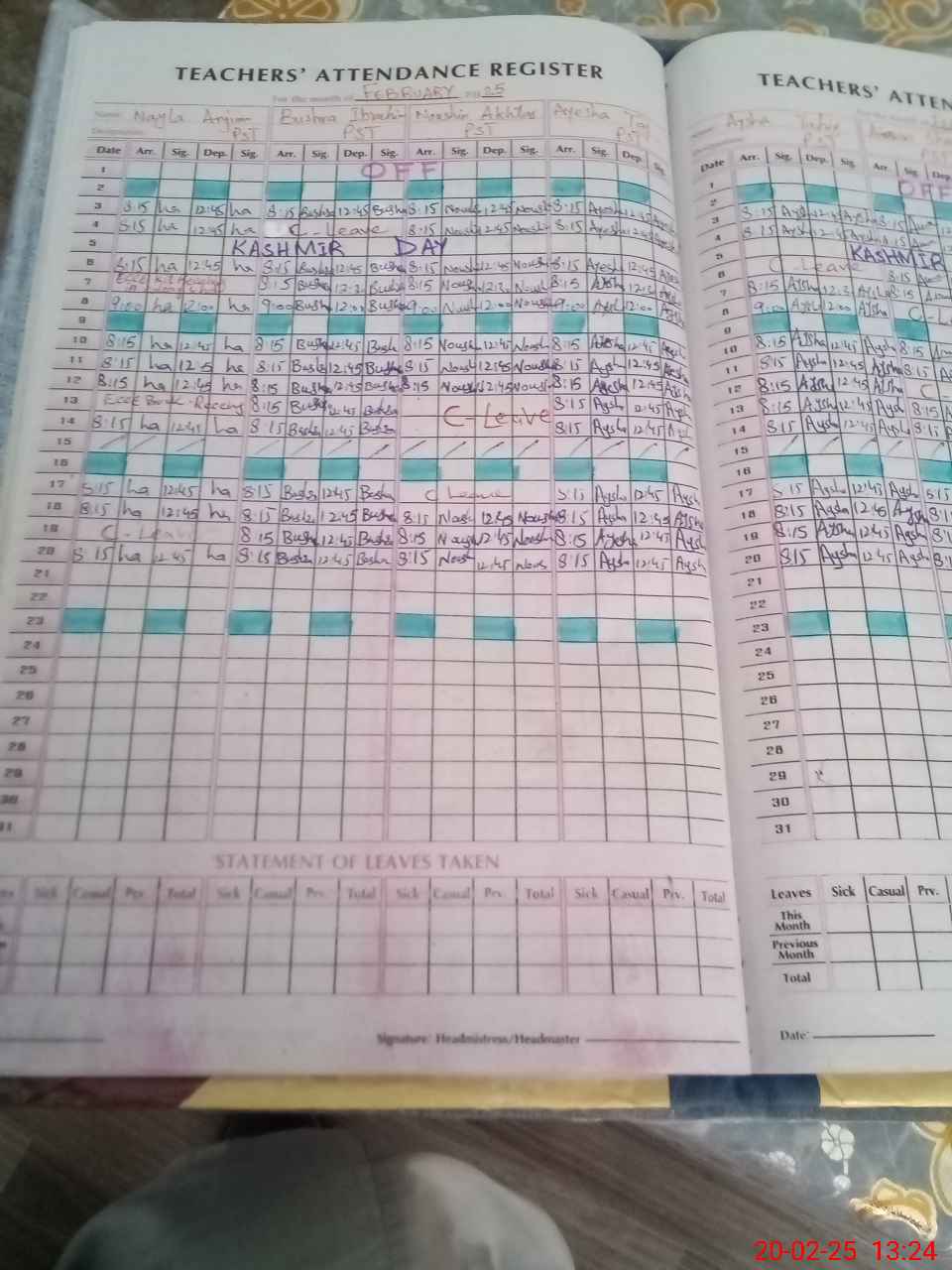 | Leave | Duty | Absent | Maternity | Medical | Ex- Pak |