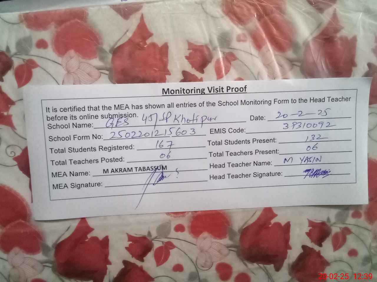 | EMIS Code: 39310092 | Name of School: GES 45/SP KHOTI PUR | |||