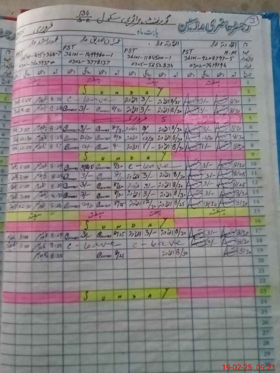 | CNIC | Full Name | Designation | R/C | Absence During Last Calender Month |