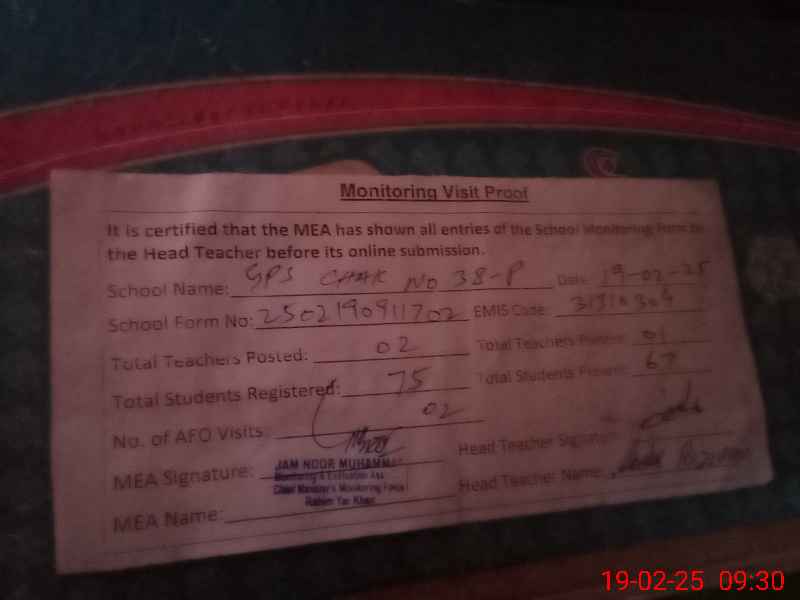 | EMIS Code: 31310304 | Name of School: GPS CHAK 38/P | |||