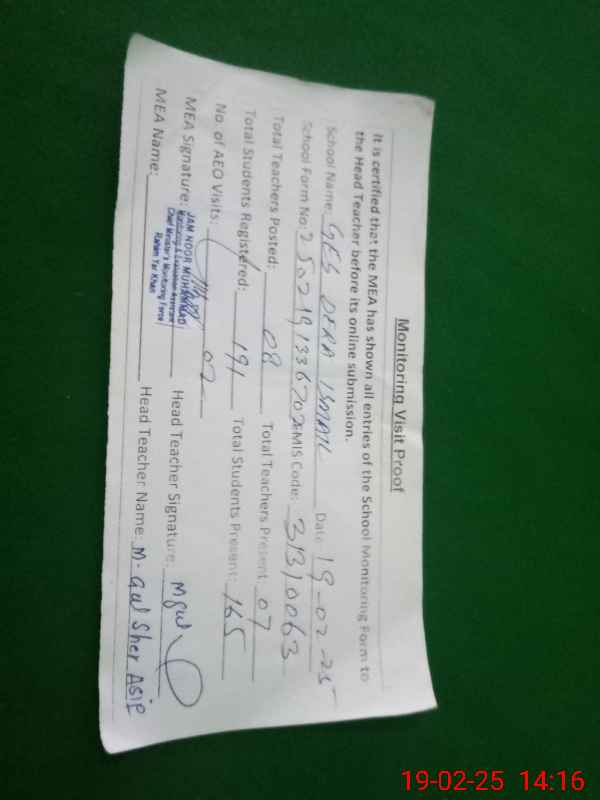 | Certified that this School was Inspected by the Undersigned MEA/DMO Today and the Information Stated Above is as Per Record. | |||||