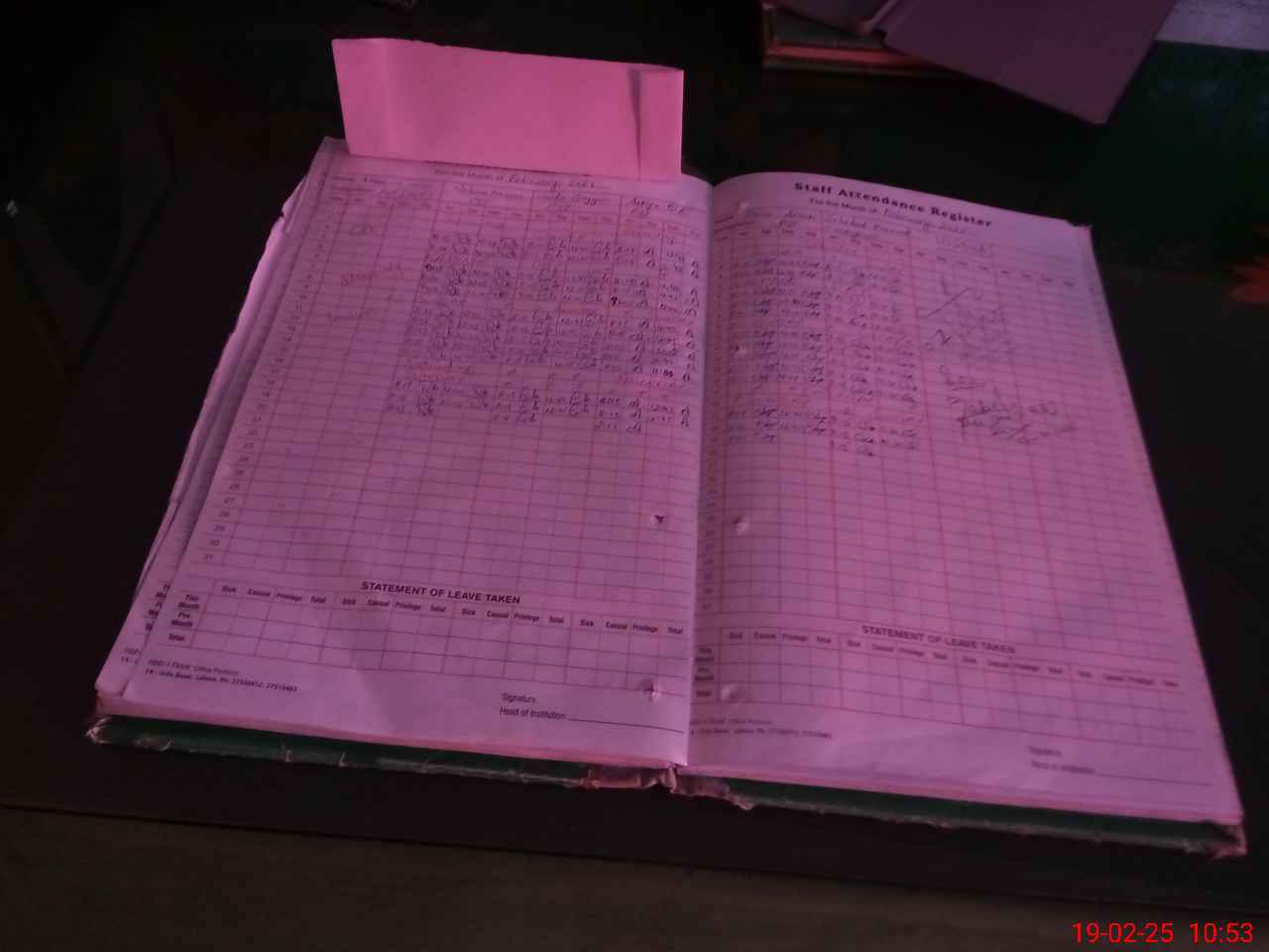 | CNIC | Full Name | Designation | R/C | Absence During Last Calender Month |