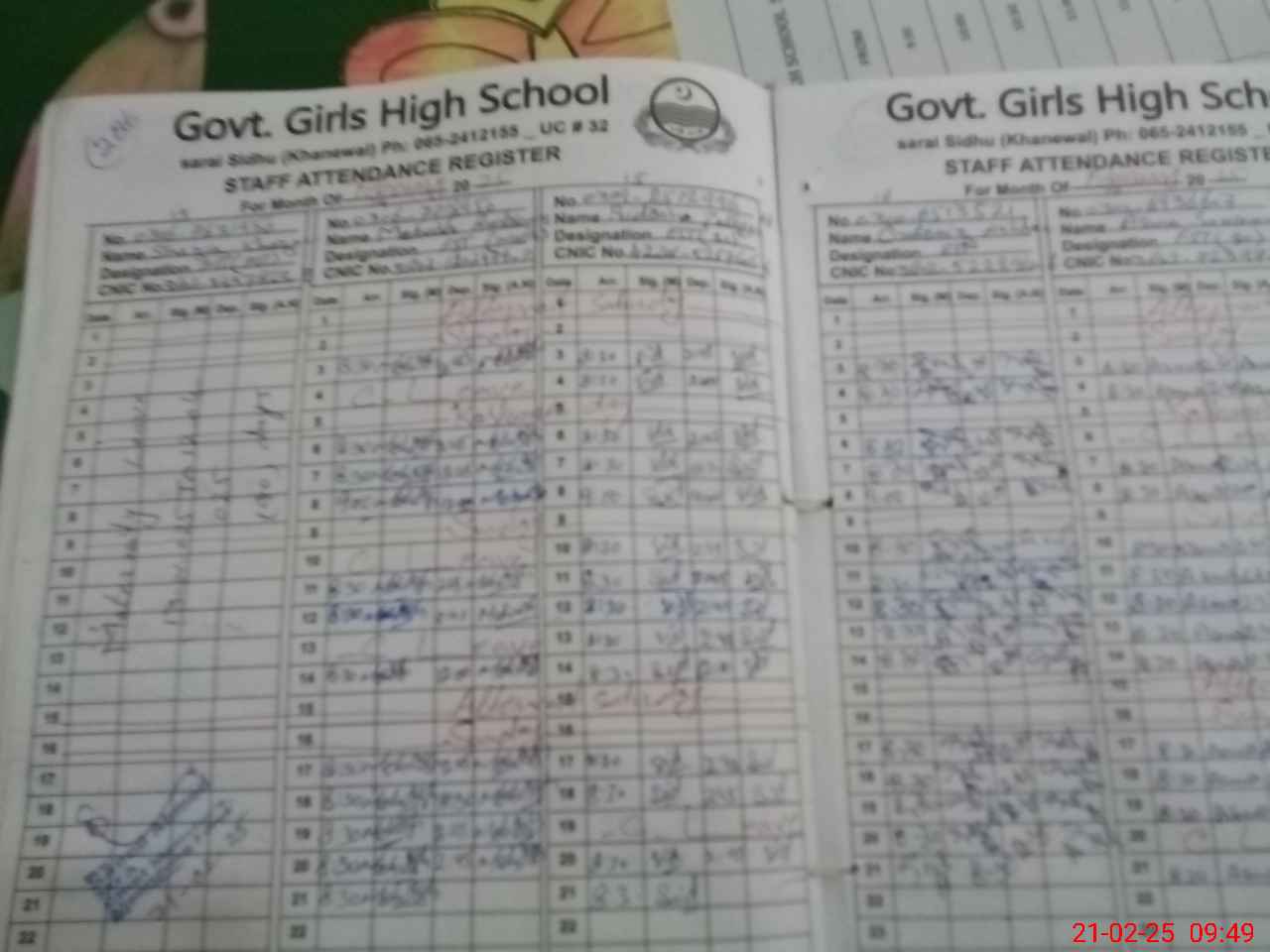 | CNIC | Full Name | Designation | R/C | Absence During Last Calender Month |