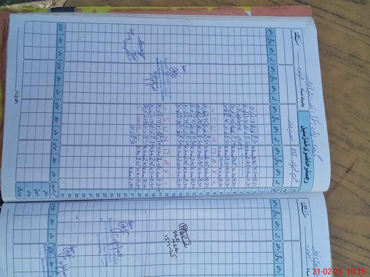 | CNIC | Full Name | Designation | R/C | Absence During Last Calender Month |