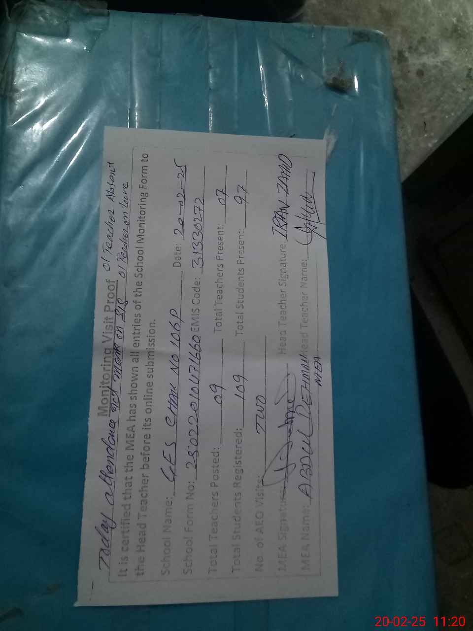 | EMIS Code: 31330272 | Name of School: GES CHAK 106/P | |||