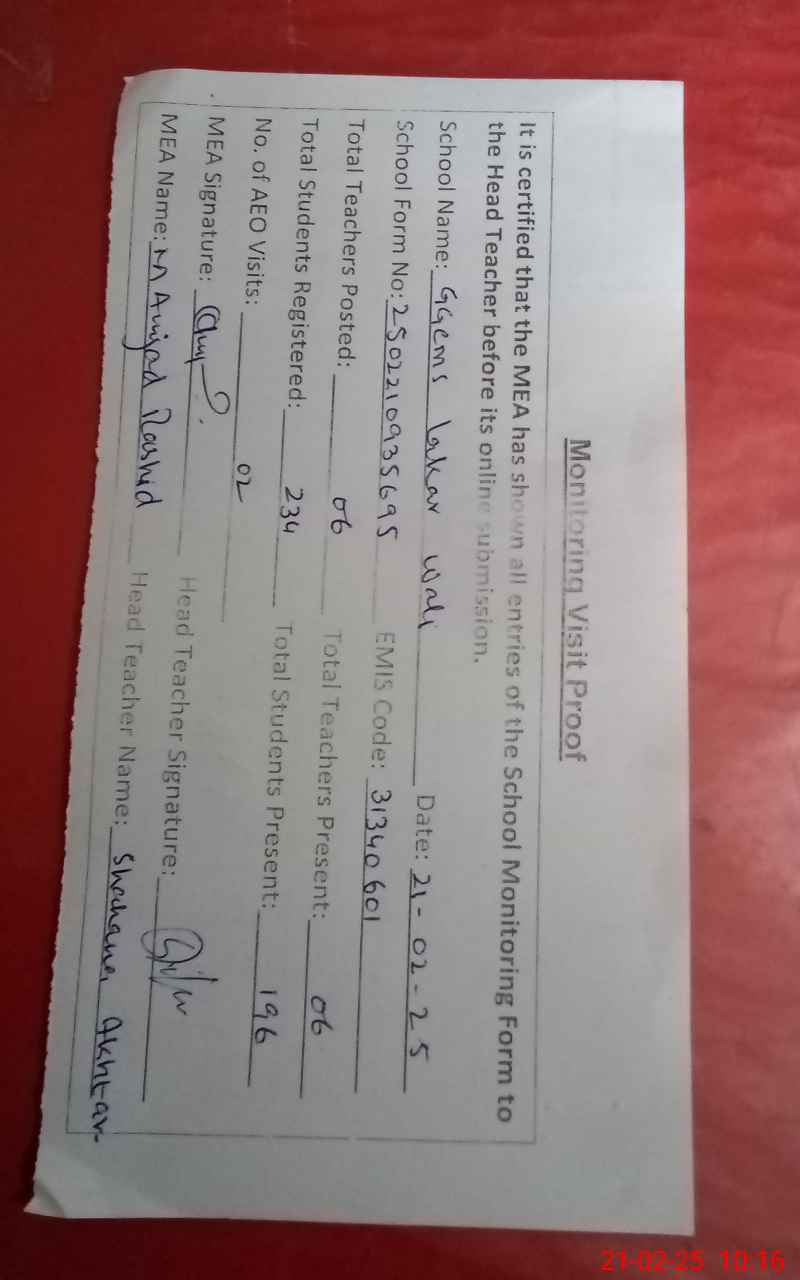 | EMIS Code: 31340601 | Name of School: GGCMS LAKAR WALI | |||