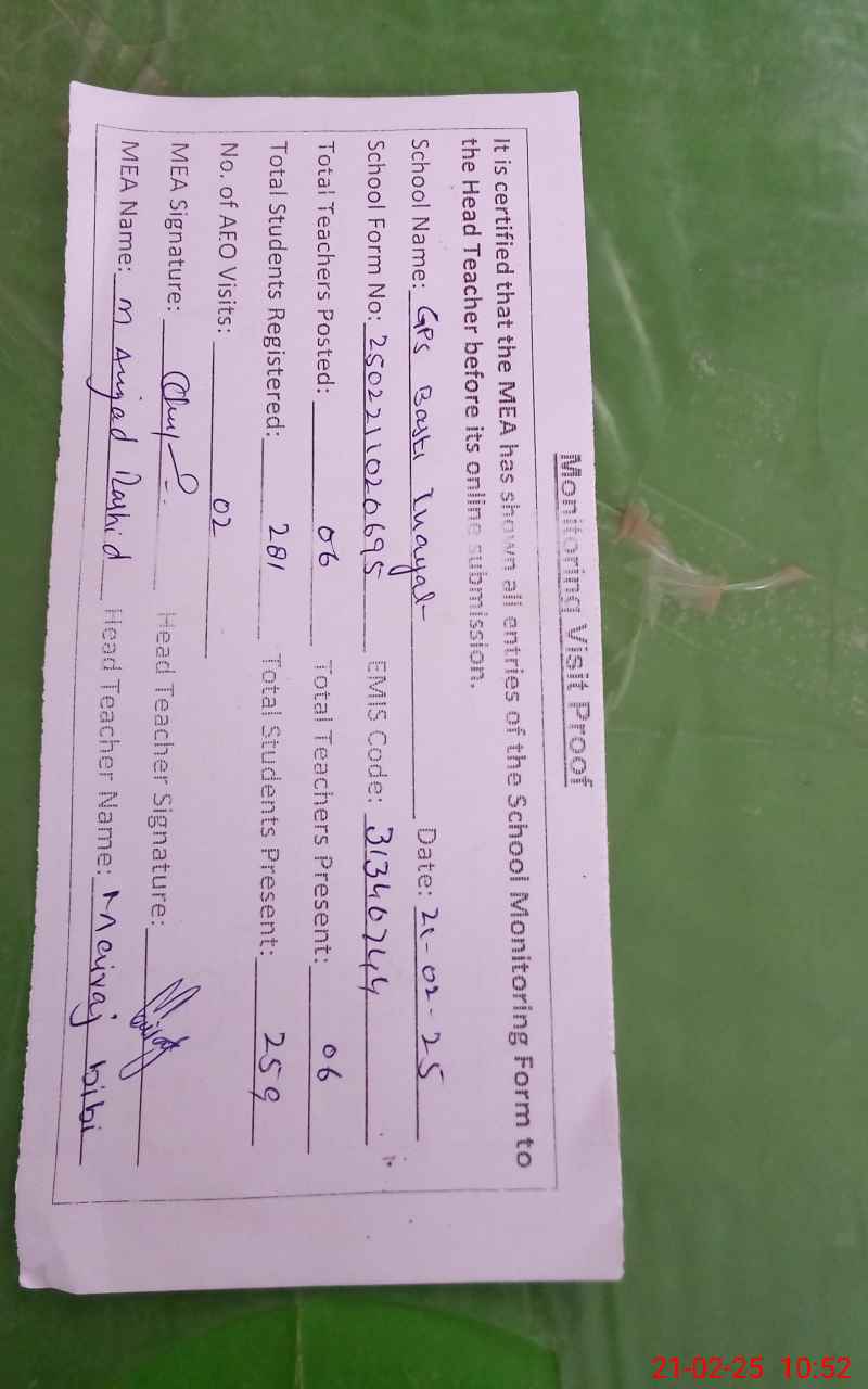 | EMIS Code: 31340744 | Name of School: GPS BASTI ANAYAT | |||