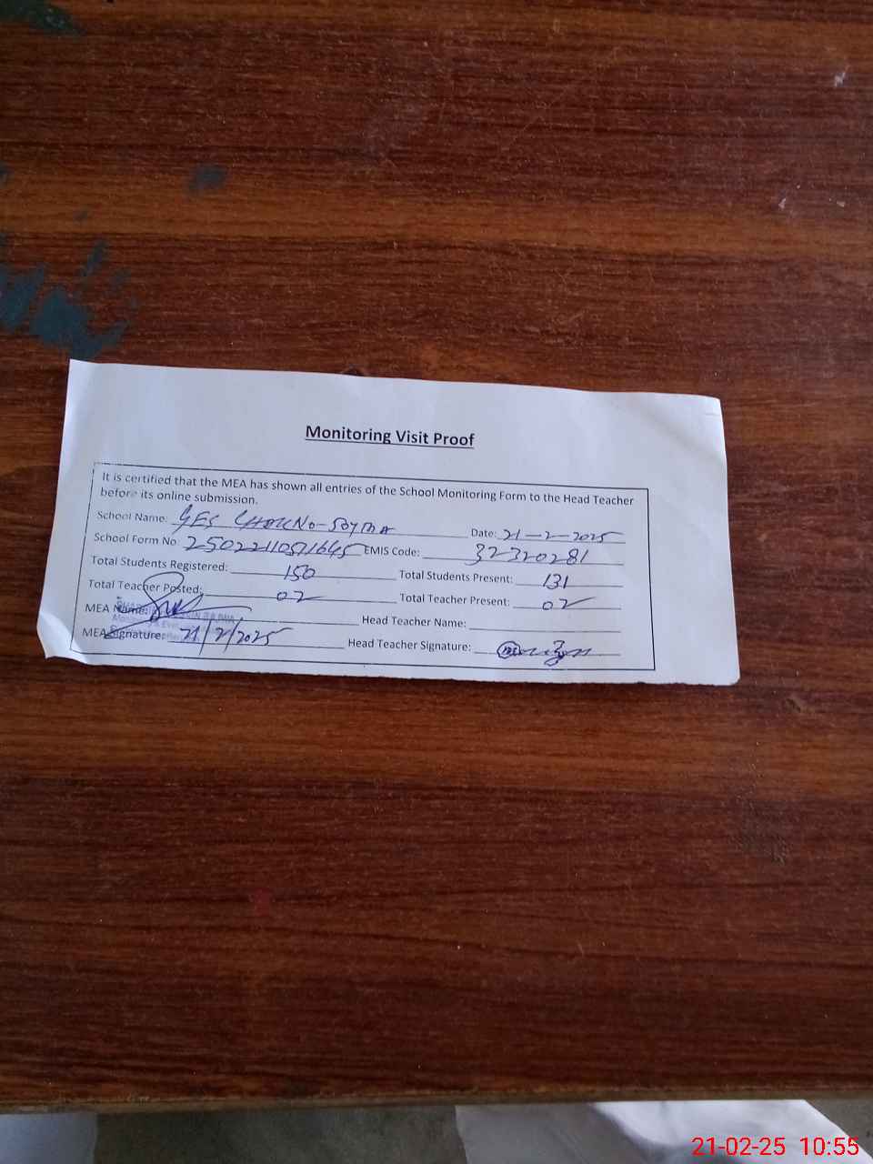 | EMIS Code: 32320281 | Name of School: GES CHAK NO.507 TDA | |||