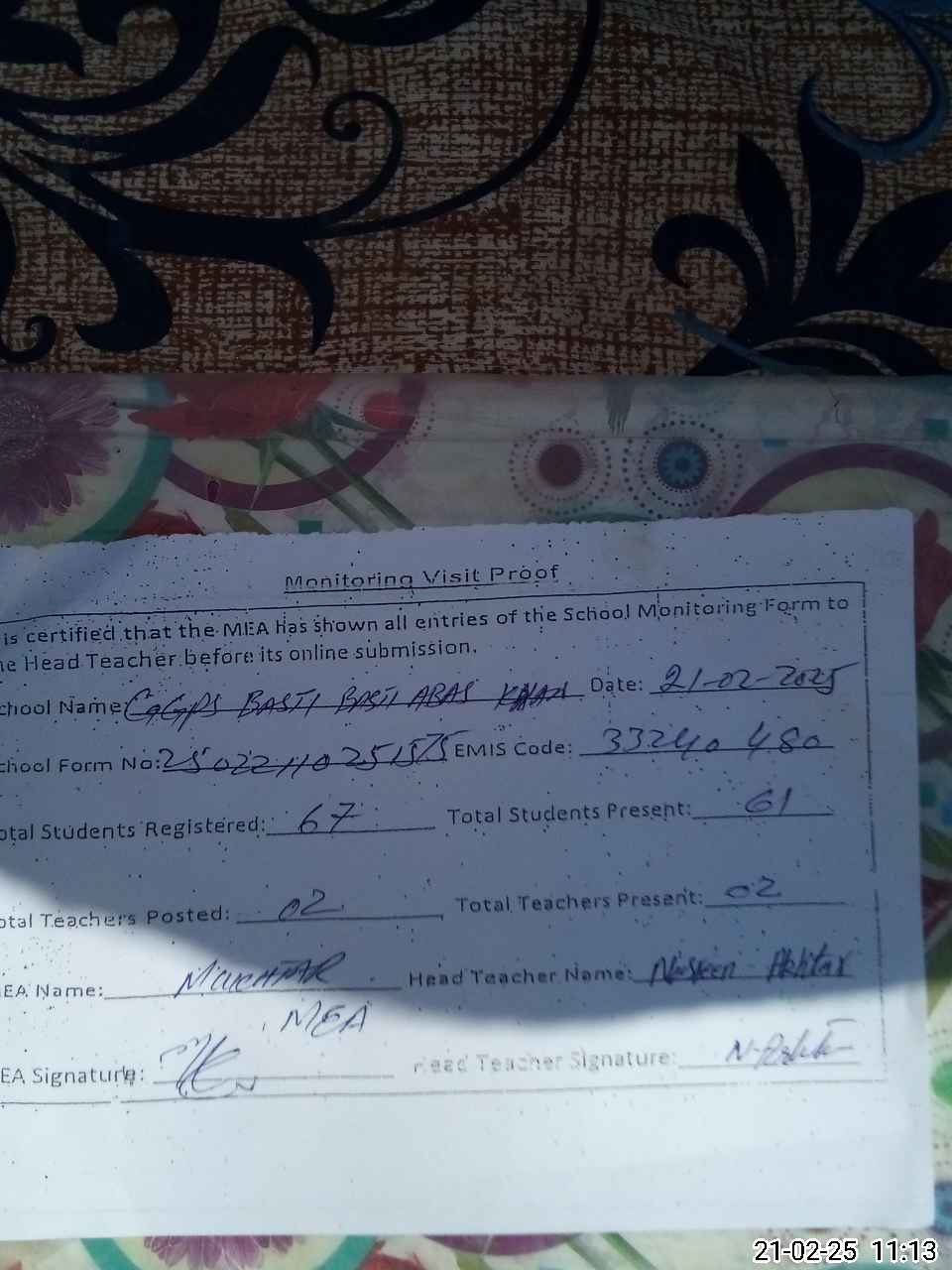 | EMIS Code: 33240480 | Name of School: GGPS BASTI ABBAS KHAN | |||