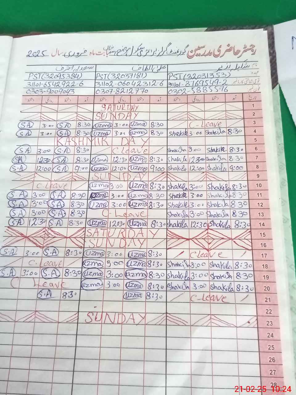 | 31**** | Sh**** Na**** | PST | Regular | 0 | 0 | 0 | 0 | 0 | 0 | 0 | 0 | 0 | Casual |