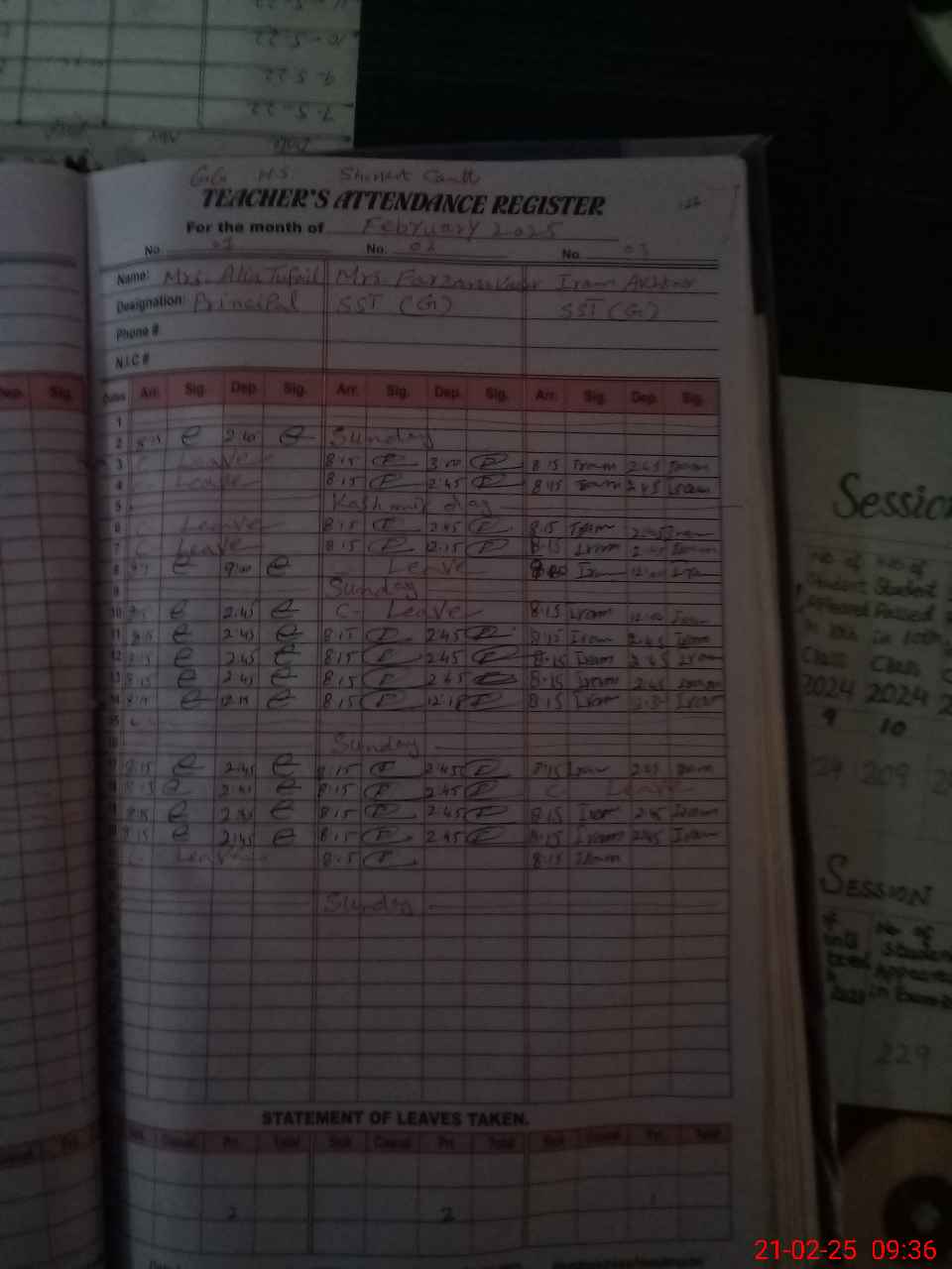 | CNIC | Full Name | Designation | R/C | Absence during last cal. month |