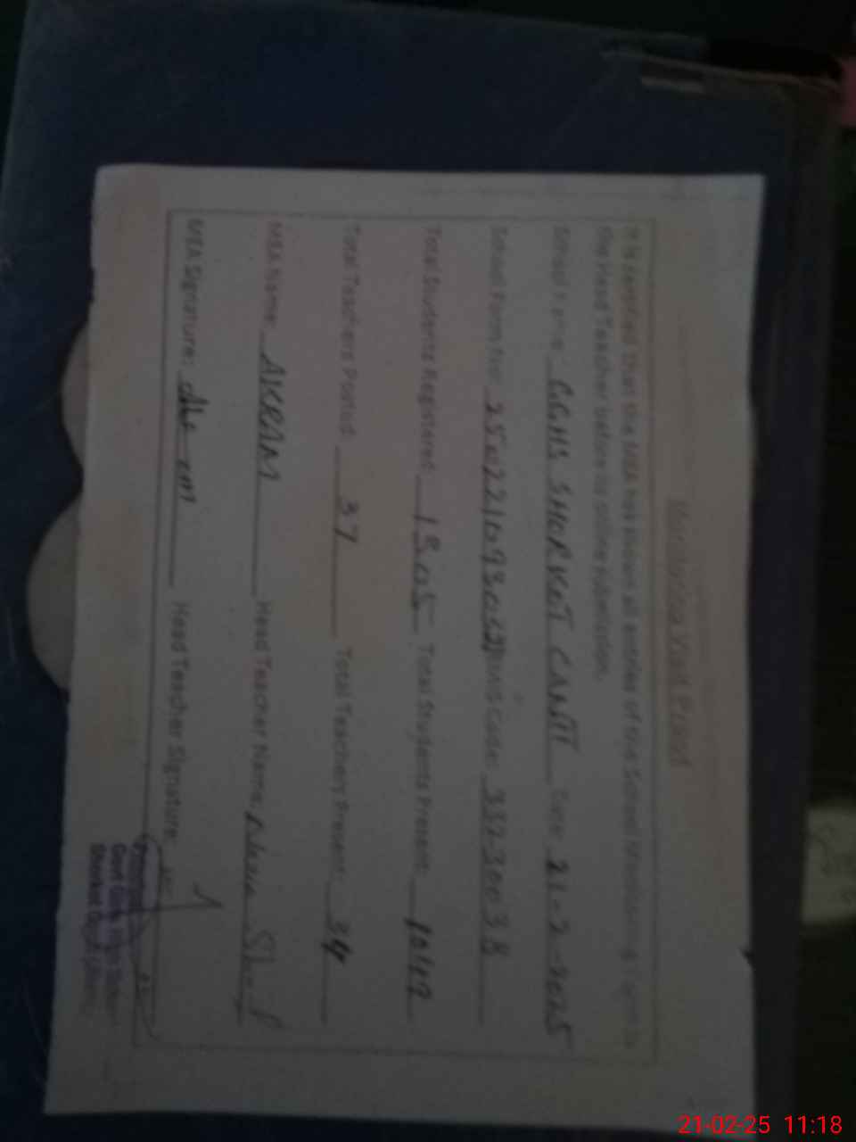 | Name: AL**** TU**** Designation: (School Headmaster's/Headmistress's) PRINCIPAL Phone/Cell Number: 03**** |