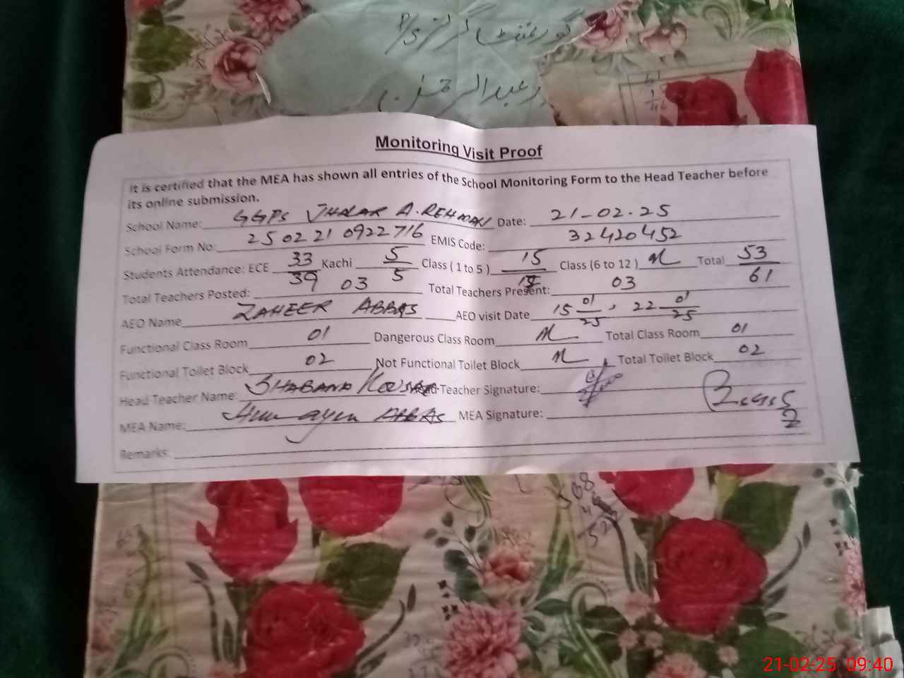 | EMIS Code: 32420452 | Name of School: GGPS JHALLAR ABDUL REHMAN | |||