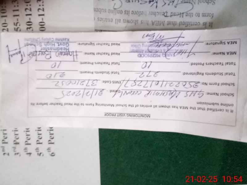 | Attendance Register | Head Teacher | MEA with School | Visit Proof |