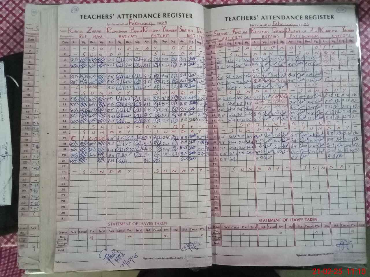 | Attendance Register | Head Teacher | MEA with School | Visit Proof |