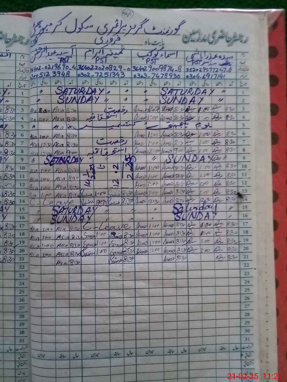 | Name: Az**** Ha**** Designation: (School Headmaster's/Headmistress's) PST Phone/Cell Number: 03**** |