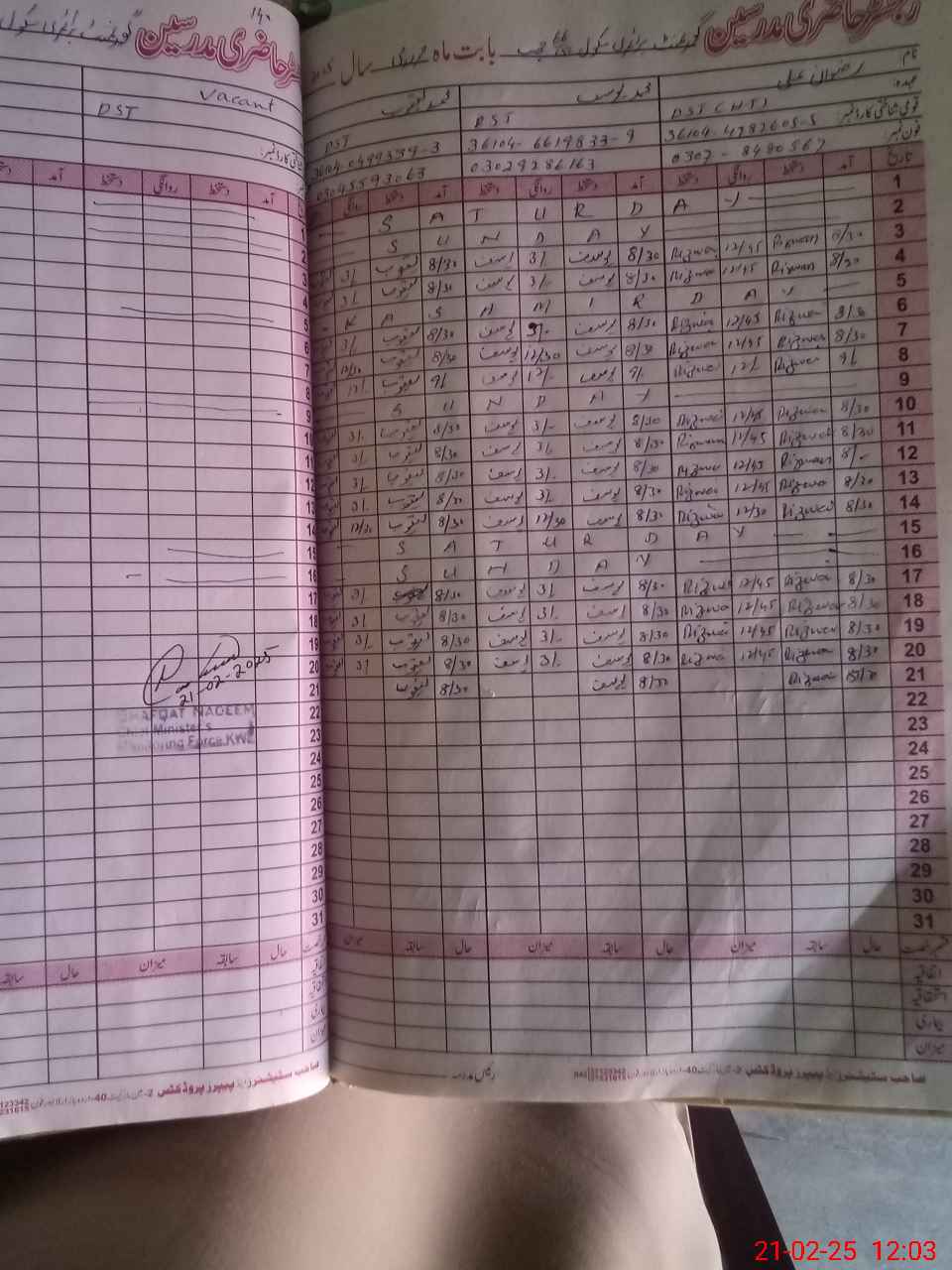 | Name: RI**** AL**** Designation: (School Headmaster's/Headmistress's) PST Phone/Cell Number: 03**** |