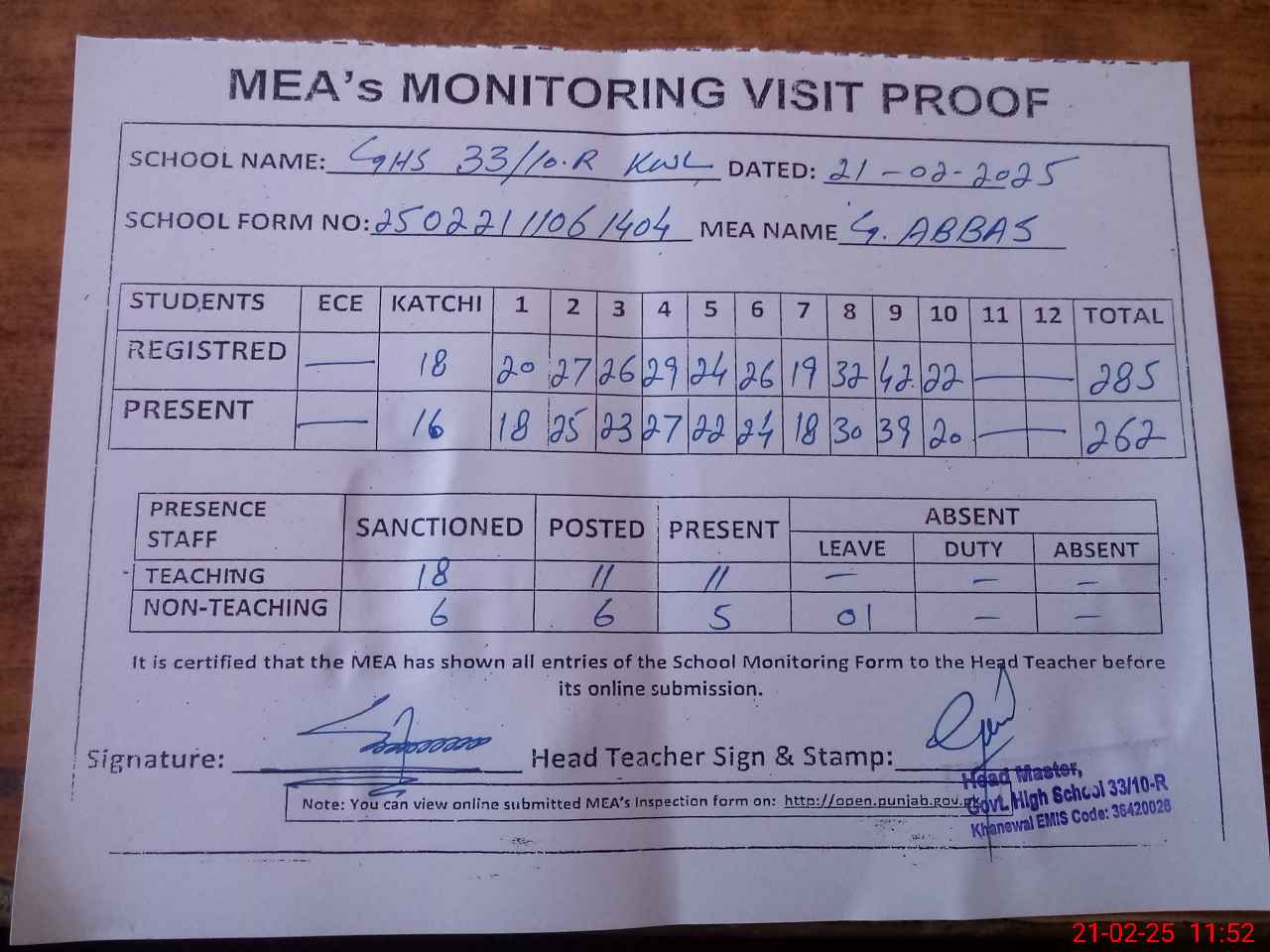 | EMIS Code: 36420026 | Name of School: GHS 33/10-R, KACHA KHUH | |||