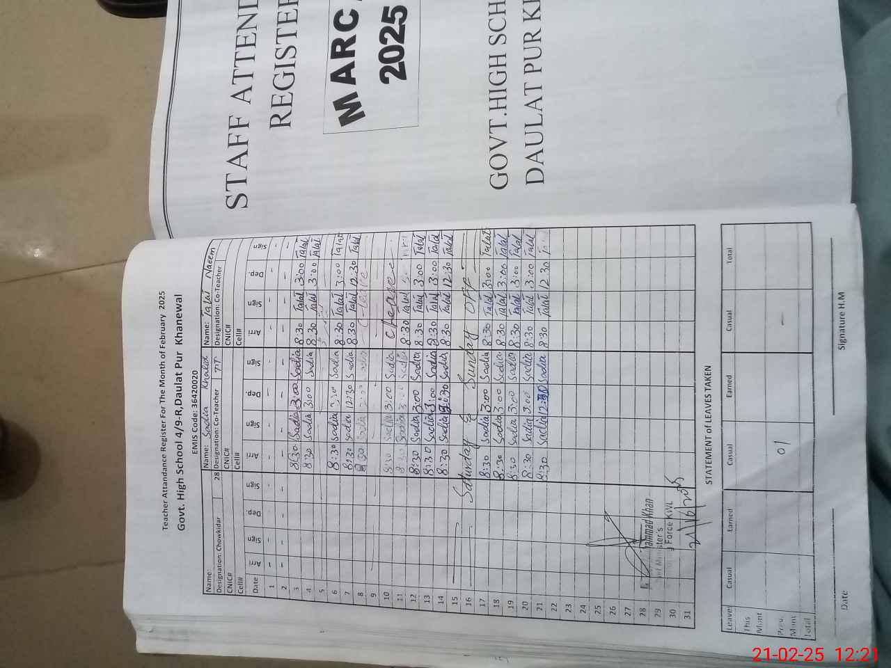 | EMIS Code: 36420020 | Name of School: GHS 4/9-R DAULAT PUR, P/O 7/9-R, KACHA KHUH | |||