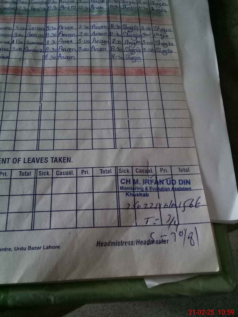 | Name: Sh**** Ak**** Designation: (School Headmaster's/Headmistress's) PST Phone/Cell Number: 03**** |
