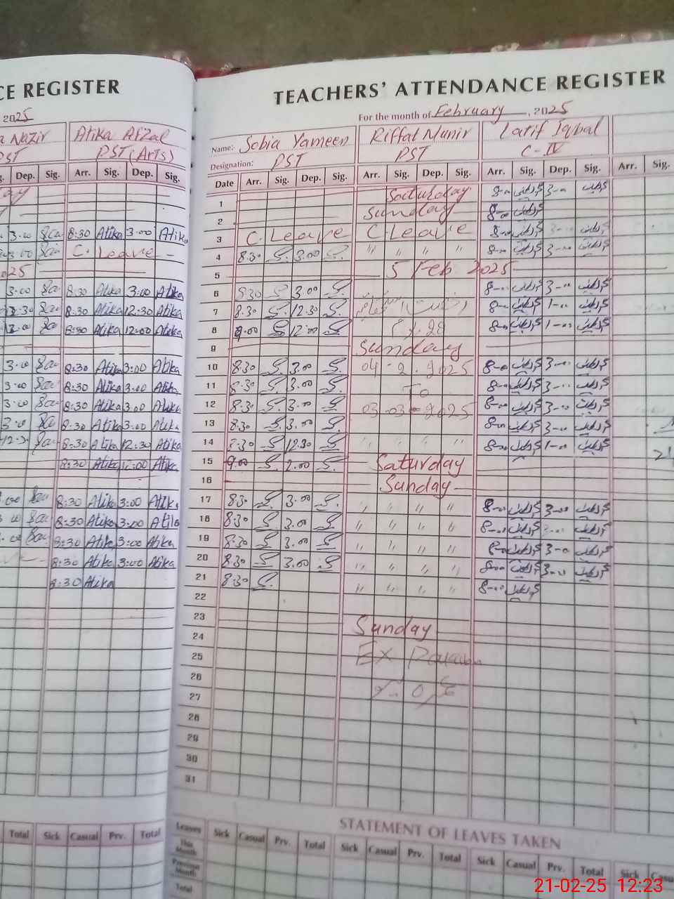 | Leave | Duty | Absent | Maternity | Medical | Ex- Pak |