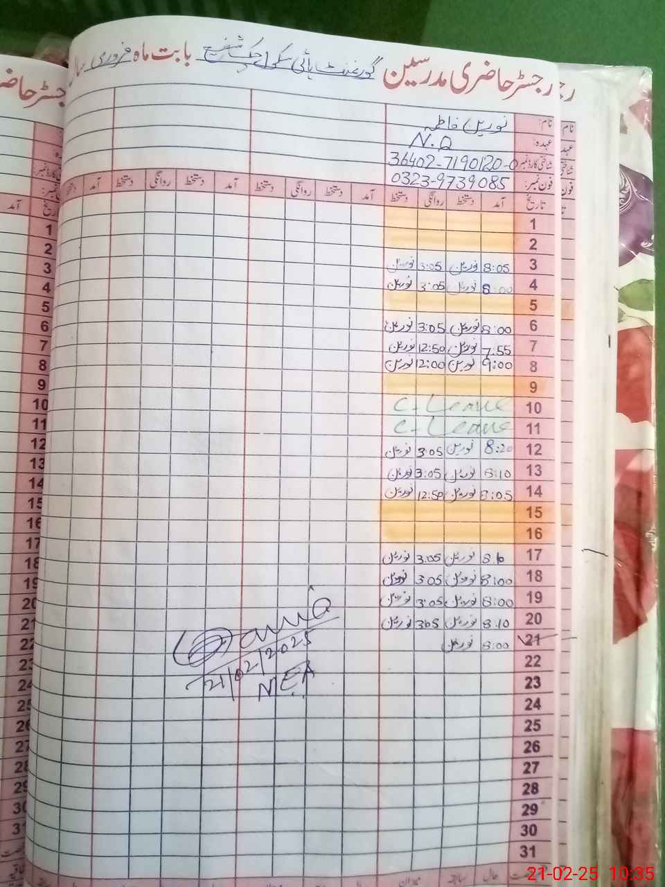 | CNIC | Full Name | Designation | R/C | Absence During Last Calender Month |