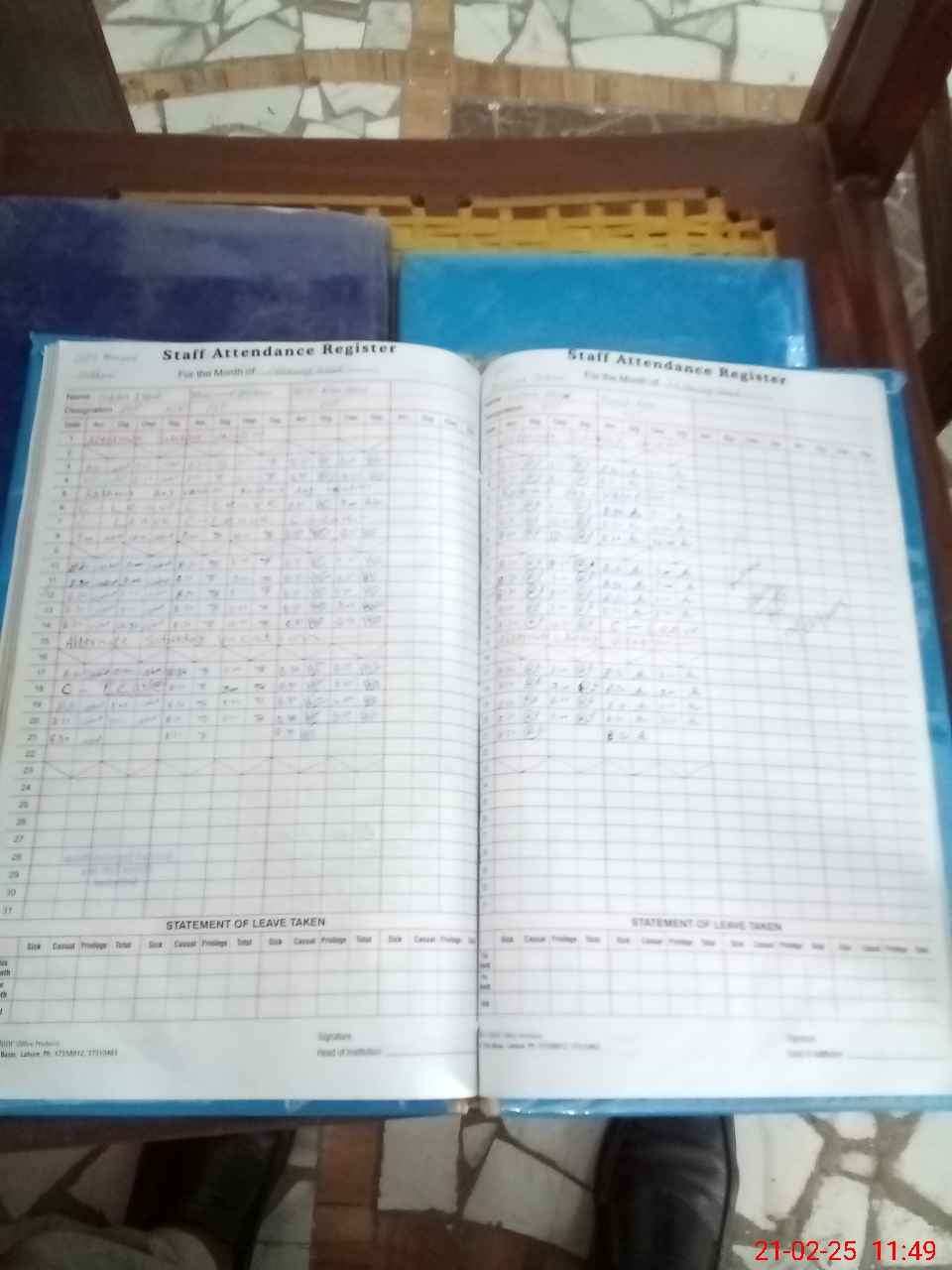 | Leave | Duty | Absent | Maternity | Medical | Ex- Pak |