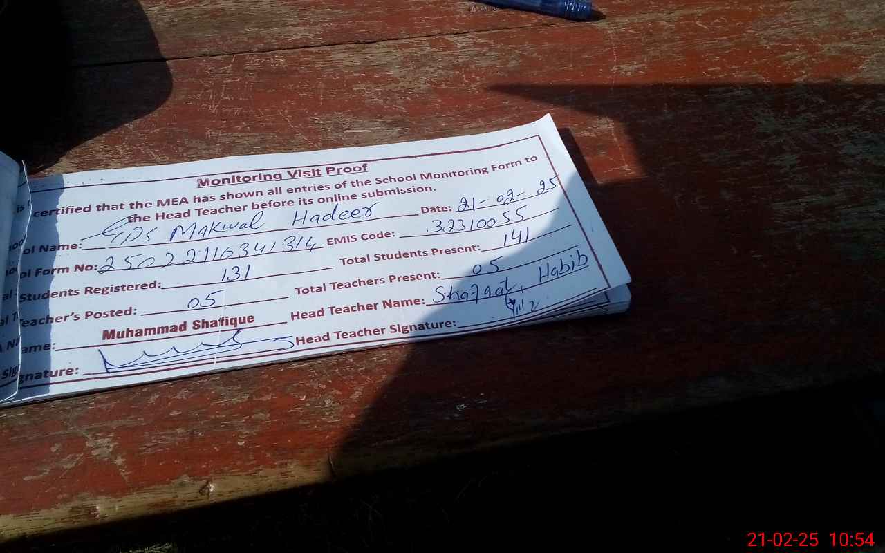 | EMIS Code: 32310055 | Name of School: GPS MAKWAL HADEER | |||