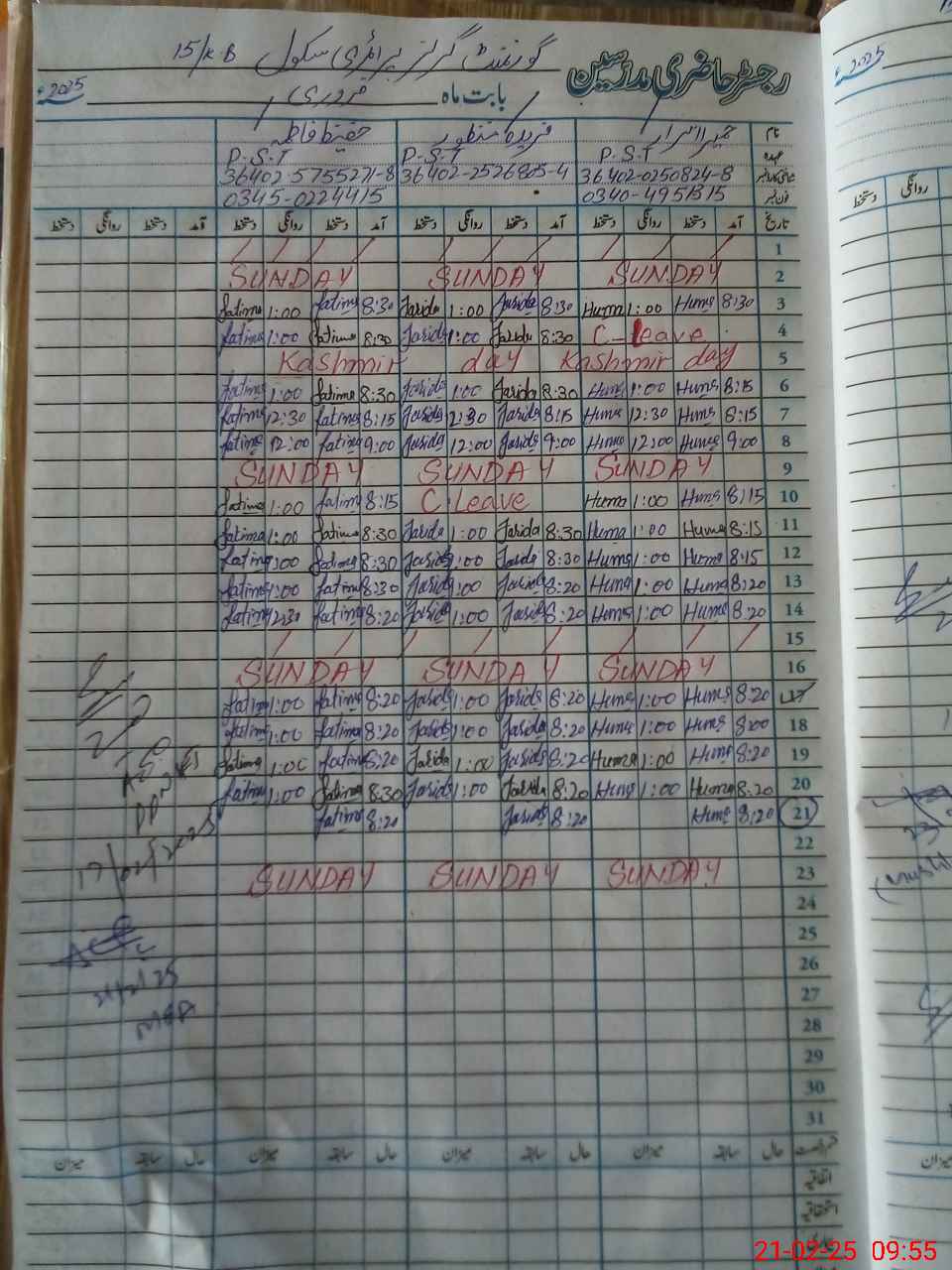 | Name: HU**** IS**** Designation: (School Headmaster's/Headmistress's) PST Phone/Cell Number: 03**** |