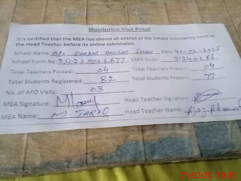 | EMIS Code: 31340266 | Name of School: GPS DARBAR GHULAB SHAH | |||