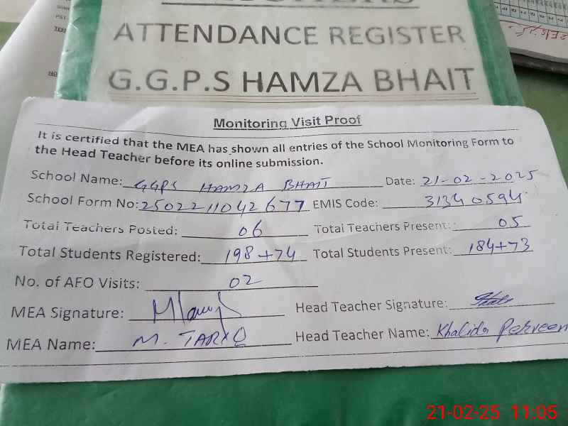 | EMIS Code: 31340594 | Name of School: GGPS HAMZA BHAIT | |||